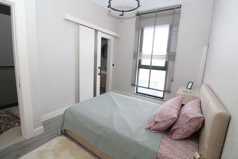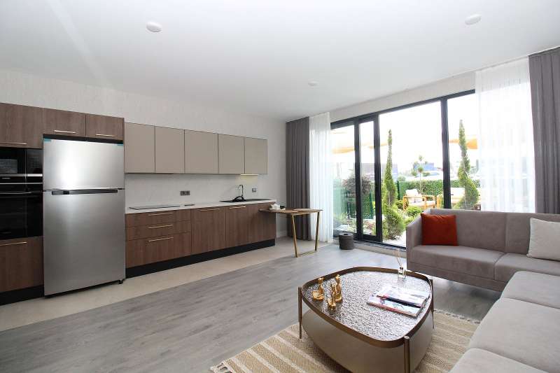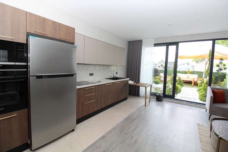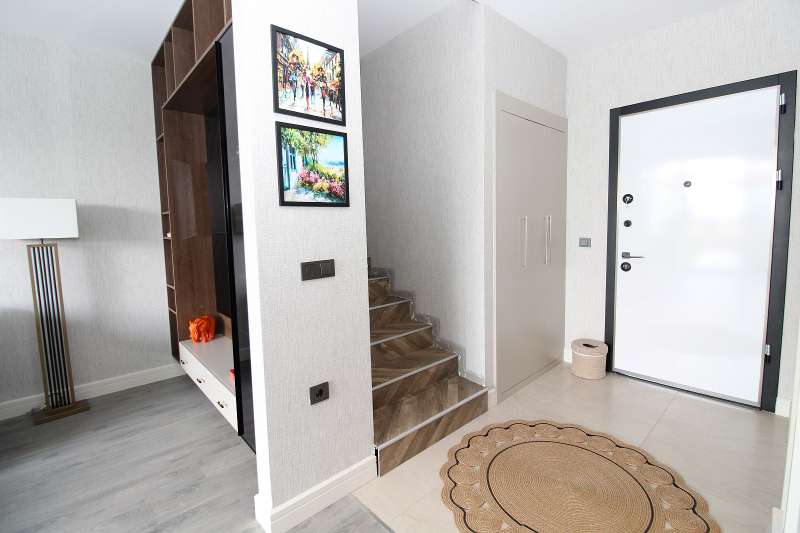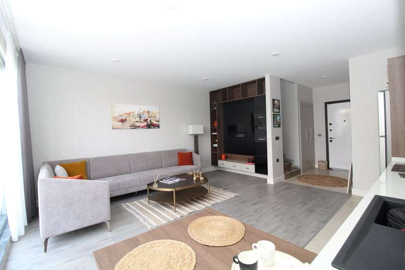 Villas for sale in Ankara are designed as duplexes and consist of 2 bedrooms, a living room, an open-plan American-style kitchen, 2 bathrooms, and a private garden. These villas are planned in accordance with the requirements of modern living and come with features such as underfloor heating, a cloakroom area, and high-quality wet floor coverings as standard. Optional features like a fireplace and TV unit are also available upon request.