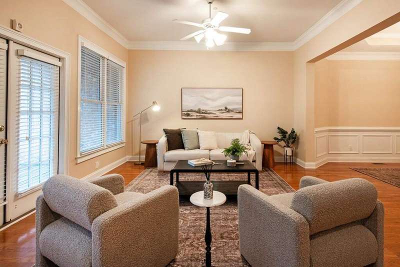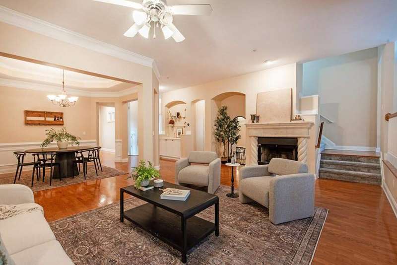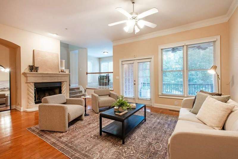 Welcome Home to this charming, end-unit townhome, conveniently located next to downtown Smyrna Village. Enjoy all the perks of city life with minimal maintenance. As you walk in the front door, you are greeted with an abundance of natural light, a spacious living room that is open to the dining area, and a large eat-in kitchen with breakfast area. The main level also boasts a limestone fireplace, built-ins, and has an additional loft space, perfect for WFH, play area, or seating nook. On the upstairs level, you will fall in love with the oversized Primary suite with a large walk-in closet, spacious en-suite bathroom, and large seating area. The secondary bedroom upstairs has charming built-in bookshelves and even more storage. Not to be outdone, the lower level rooms are generously sized with storage and a full bathroom; perfect for guests. The home has two balconies, new carpet on the upper and lower levels, a private fenced-in backyard, 2-car garage, and a plethora of storage. You will love the immediate accessibility to Smyrna, Vinings, the Battery and more!
