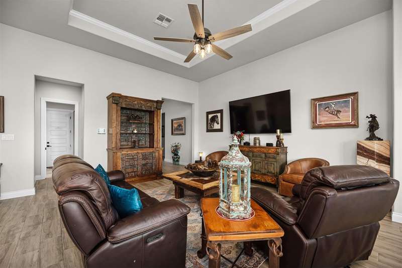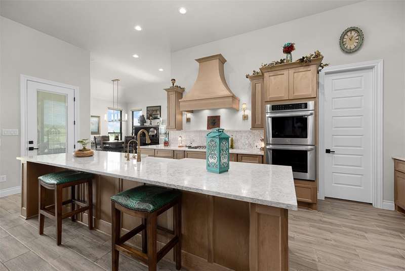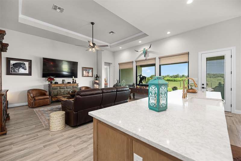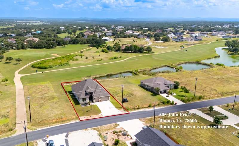 Luxury Hill Country Living on the Golf Course! An exceptional custom-built residence by JLP Builders, ideally located in the heart of the Hill Country on the tee box of Hole #16 at Vaaler Creek Golf Club—one of Texas' top-rated public courses. This stunning 4-bedroom, 3.5-bath, single-story home combines timeless craftsmanship with upscale modern finishes, all situated in the sought-after Rockin’ J Ranch community in Blanco, TX. You're greeted by an elegant open-concept floor plan with soaring ceilings & abundant natural light that perfectly complements the tranquil golf course views. The designer kitchen is an entertainer’s dream, a large island with seating, custom cabinetry, top-of-the-line stainless steel appliances, & a walk-in pantry that makes hosting effortless. The primary suite is a peaceful retreat with a spa-like en-suite bathroom with a frameless glass walk-in shower, dual vanities, & an expansive walk-in closet. Thoughtfully designed for comfort & privacy, the split floor plan includes 3 spacious secondary bedrooms, including a guest suite with its own private bath, ideal for visitors or multi-generational living. Step outside to a covered back patio that offers a front-row seat to Hill Country sunsets & the serene sounds of nature, all while overlooking the manicured greens of the course. Whether you're enjoying morning coffee or evening cocktails, this outdoor space is designed for relaxation with the sound of the waterfall near by. Ownership at RJR access to a Jr. Olympic-sized swimming pool, clubhouse, grill, & fishing pond.The neighborhood also hosts community events throughout the year, making it a welcoming & vibrant place to call home. Located just 3 miles south of downtown Blanco, you’re only minutes from local shops, dining, historic Blanco State Park, & the Blanco River. This location places you in the heart of the Texas Hill Country Wine Region, home to more than 50 wineries, tasting rooms, & vineyards.