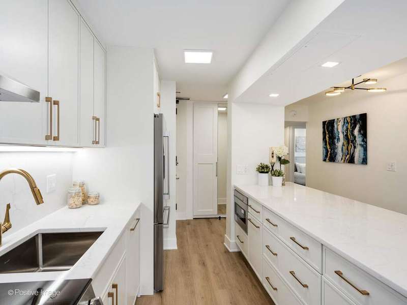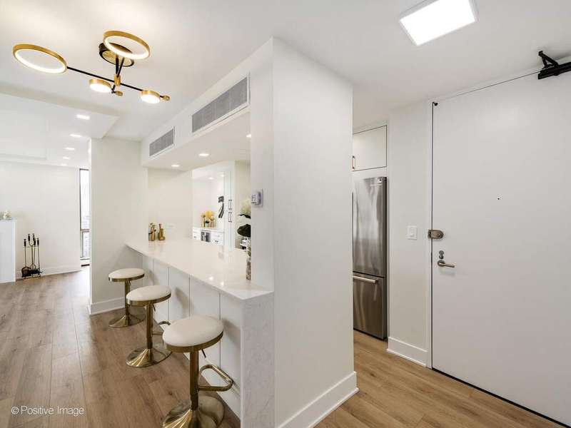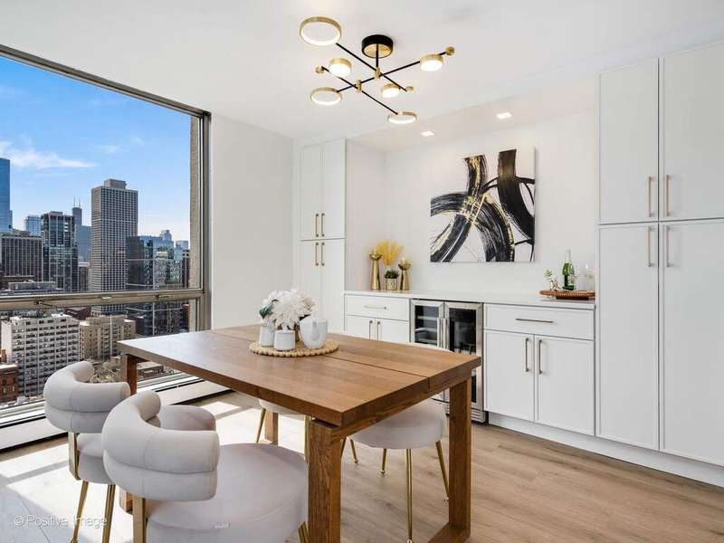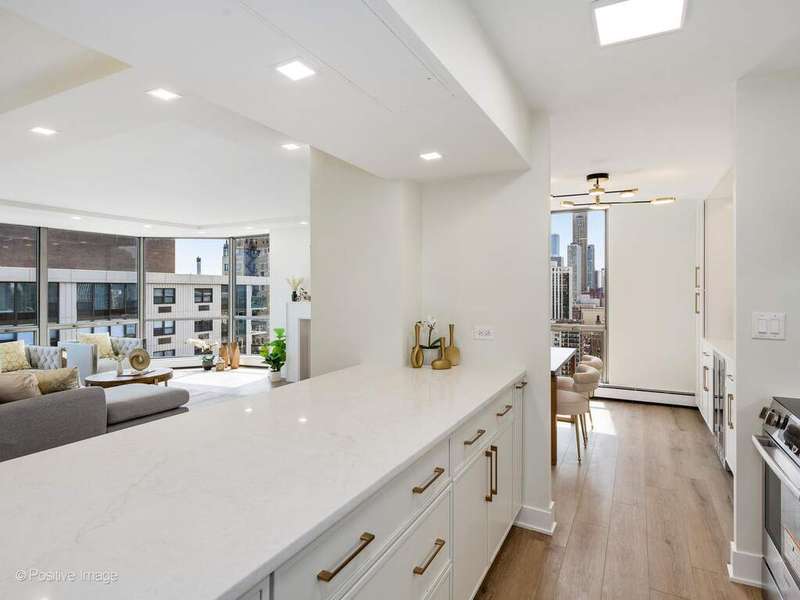 Presenting this stunning brand new gut renovated three bedroom unit in a prestigious location, on a high floor with stunning views, in the landmarked Ritchie Tower building. The newly redesigned floor plan provides a bright open space that has a chef's kitchen that opens to the living & dining areas for entertaining and family gatherings. The three bedrooms are generously sized and there are two luxurious new bathrooms. Be the first to live in this new unit with meticulous craftsmanship, attention to detail and finished to the highest standards. The kitchen has custom off-white slim shaker cabinets with under cabinet led lighting, gold accent hardware & fixtures, quartz countertops and large peninsula with breakfast bar & additional cabinet storage. High-end Bosch appliances - slide-in stove, French door refrigerator, cabinet-panel dishwasher, microwave drawer. The kitchen opens to the dining area with built-in credenza matching the kitchen cabinets, and a wine fridge for convenience. The open living room has floor to ceiling windows that wrap around providing amazing views of the Chicago skyline and Lake Michigan. At the heart of the living space is a rare wood burning fireplace with mantle (fireplaces are only in the top few floors of the building) The primary suite has lake views, it comfortably fits a king size bed, has a professionally organized large walk-in closet, the ensuite bathroom has slim shaker vanity with quartz top, soaking tub, finished with black & gold accent fixtures & hardware, contemporary large format tiled walls and floors. The second & third bedrooms both are also generously sized and have lake views and organized closets. The new guest bathroom has a walk-in shower with sliding glass door, slim shaker vanity with quartz top, finished in gold accent hardware and fixtures. Throughout the unit there are newly built-in recessed lights, wide plank light wood color floors, new electrical & plumbing, abundant professionally organized closets. The A+ location, in the heart of Gold Coast, is a timeless place that's second to none, surrounded by Chicago's most coveted amenities, attractions and architecture - The lakefront, beaches, parks, Michigan Avenue, Oak St, world class dining & entertainment are all at your doorstep. Ritchie Tower (1310 Ritchie) is a highly desired, full amenity, full service building, with 24 hour door staff, onsite management and maintenance/engineer. Amenities include an outdoor pool with sundeck, fitness room. The building has an attached parking garage. Additional large full height storage cage provided. Pets allowed. Healthy reserves with no upcoming big projects or special assessments. Low HOA fees for this three bedroom unit include heat, A/C, cable TV & internet and all building amenities, everything except electricty. This is truly a rare opportunity for an impressive new unit in a superb building with an amazing location.