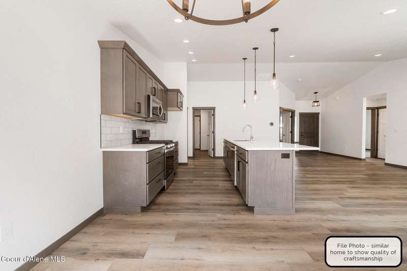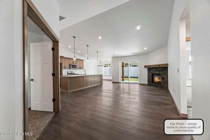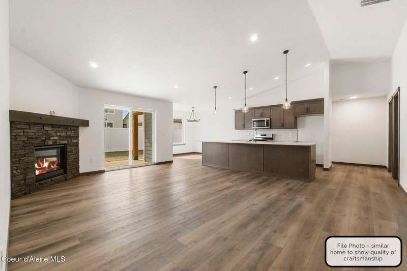 Under construction. Gas fireplace, 3 car garage, quartz countertops throughout, covered front and rear patio, vaulted ceilings, 95% gas furnace, Nest thermostat, tankless gas water heater, gas to rear patio, gas range, LVP flooring every where except bedrooms and closets, garage door opener, garage man door and front yard landscaping and sprinkler system. Additional lots and floor plans available!