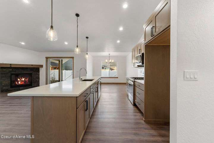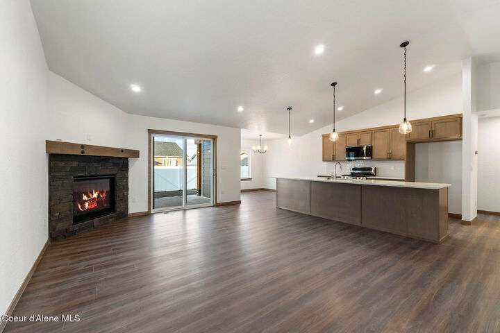 Home is built. Gas fireplace, 3 car garage, quartz countertops throughout, covered front and rear patio, vaulted ceilings, 95% gas furnace, Nest thermostat, tankless gas water heater, gas to rear patio, gas range, LVP flooring every where except bedrooms and closets, garage door opener, garage man door and front yard landscaping and sprinkler system. Additional lots and floor plans available!