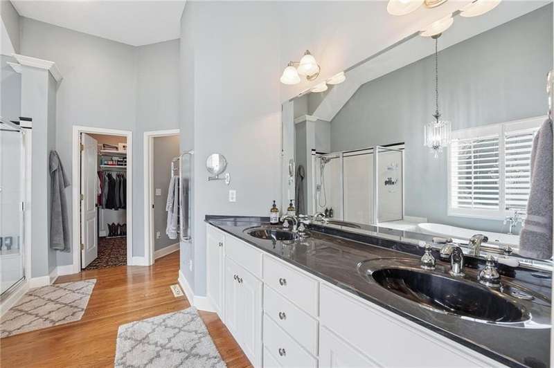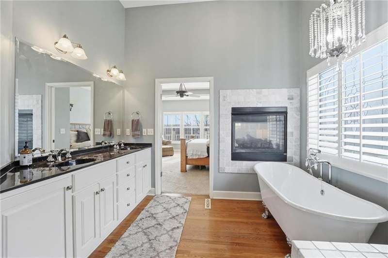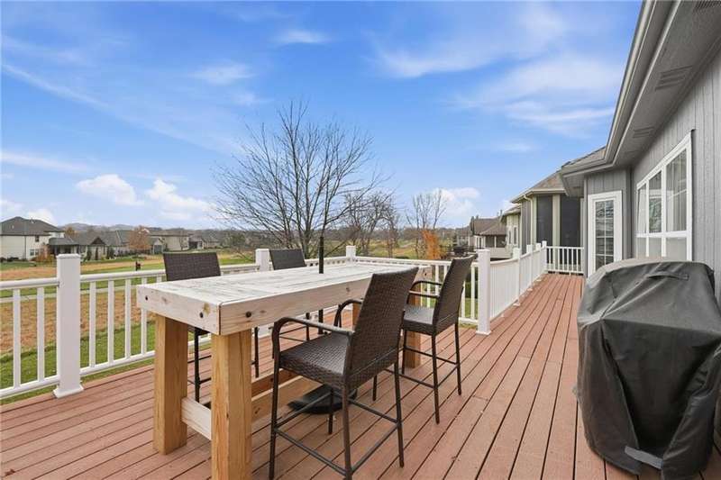 Experience luxury living on a premium golf course lot with stunning views from both the front and back of the home. Sit on your front porch watching golfers roll in, or unwind on the back deck as they make their way across the 6th hole, this home places you right in the heart of golf course living. The main level features a formal living and dining room, a warm hearth room, and a spacious kitchen equipped with a pantry, center island, granite counter tops, custom cabinets, double ovens, and a gas range. The casual dining space offers beautiful views overlooking the fairway. The primary suite is a true retreat with a see-through fireplace, elegant claw-foot soaking tub, walk-in shower, double vanity, and a large walk-in closet. The finished lower level is designed for entertaining and everyday living, offering a generous family area, game room, bar, two additional bedrooms, a full bath, and a half bath. Outdoor living shines with new gorgeous landscaping, a large deck overlooking the 6th hole, and even a small view of the lake! This home is perfect for gatherings or quiet evenings at home. Additional features include a 7x6 cedar closet, 15x13 storage room, inviting 19x7 front porch, 15x10 patio, two-tier deck spaces (30x14 and 27x6), and an oversized 29x21 garage. Located in the highly sought-after Creekmoor community, residents enjoy access to a premier 18-hole golf course, a 108 acre lake for boating and fishing, a family friendly clubhouse with casual dining, licensed bar & grill, outdoor patio, pro shop, fully equipped fitness center, weight room, zero entry swimming pool with lap lanes, tennis courts, and miles of walking and biking trails.