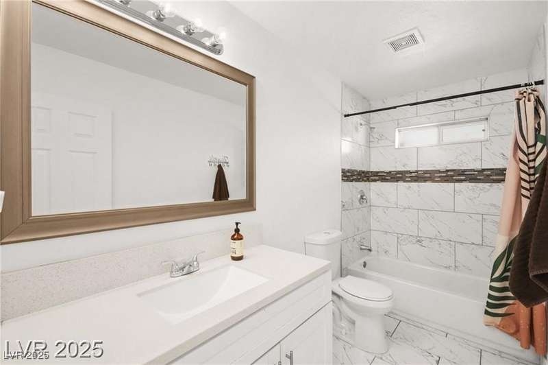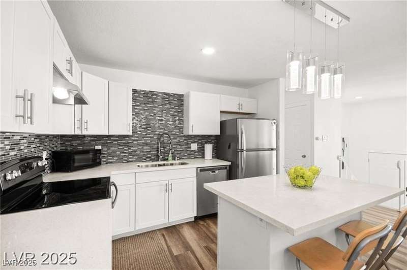 Welcome to this beautifully maintained, move-in-ready 2-story home, perfectly situated in the heart of Las Vegas with no HOA! Recently upgraded with a brand-new AC unit ($10,000 value) and new roof ($8,000 value), this home also comes fully furnished with over $12,000 invested in high-quality furniture and finishes—offering a truly turnkey experience. Step inside to discover a bright, open-concept living space with upgraded flooring and abundant natural light. The modern upstairs kitchen features stainless steel appliances, ample cabinetry, an island, and a spacious dining area—perfect for meals or hosting. Downstairs, enjoy a second living area with a wet bar—an ideal setup for entertaining or relaxing. Conveniently located near top shopping, dining, and major freeways, this home offers the perfect blend of comfort, style, and location. Don’t miss your chance to own this exceptional property—schedule your private tour today!