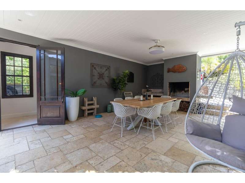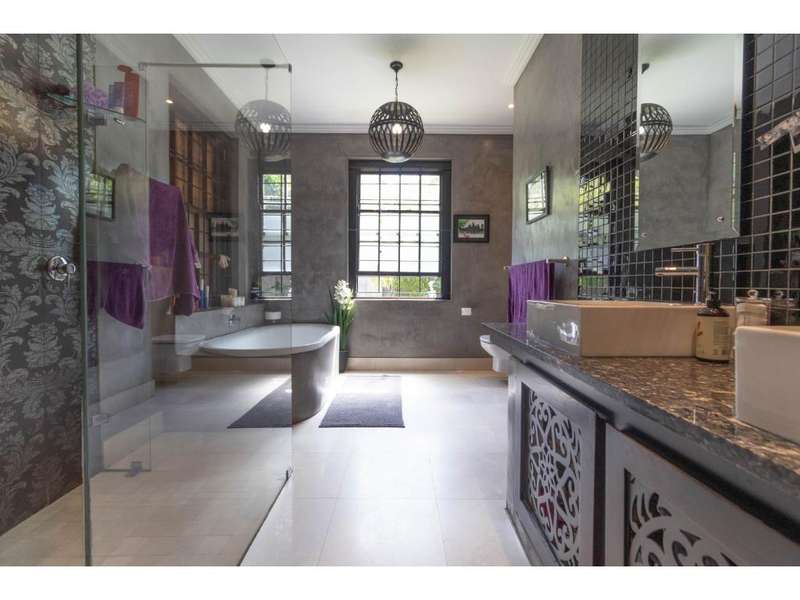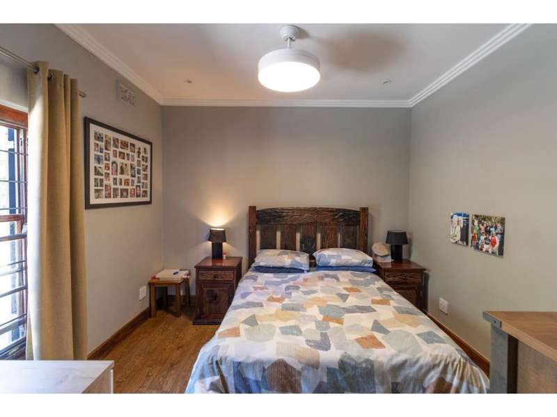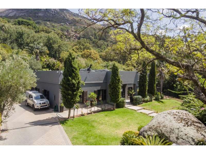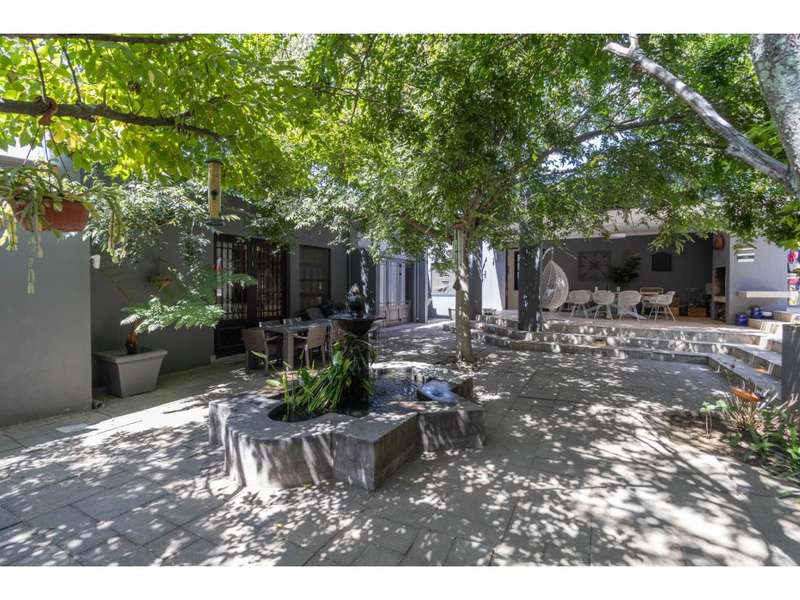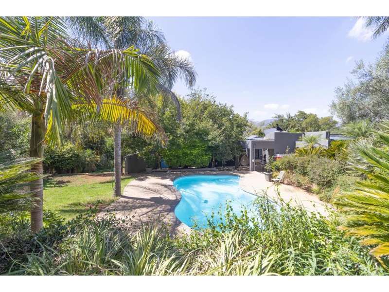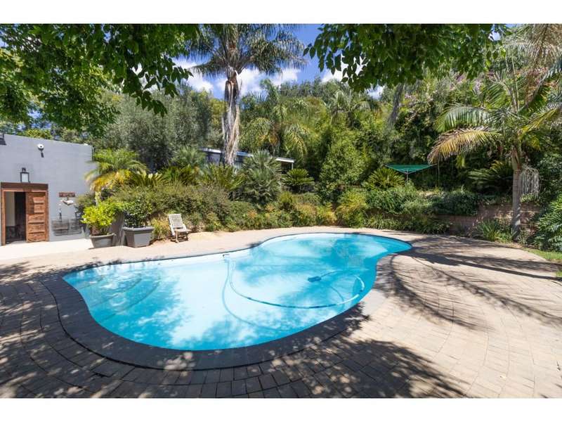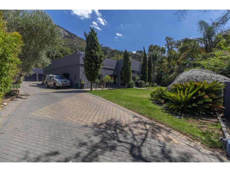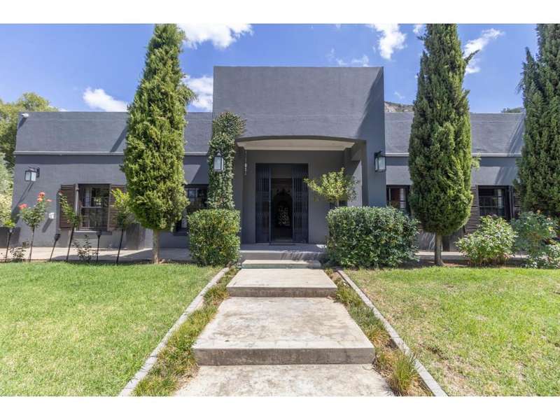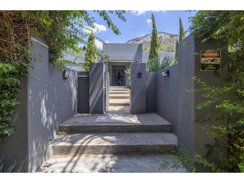 Perched on the slopes of Paarl Mountain, this magnificent 2,200m?? property offers a seamless blend of elegance, space, and natural beauty. Designed for luxurious living, the five-bedroom residence is a true sanctuary, surrounded by lush gardens, a sculpture courtyard, and breathtaking mountain views. Exquisite Bali doors create a grand entrance, setting the tone for the home's sophisticated aesthetic, with shutters adorning nearly every window for privacy and style. The property is fully equipped with modern amenities, including fibre internet, 16 solar panels with an inverter, CCTV cameras, security beams, and abundant secure parking behind an enclosed gate. For added convenience, four large water tanks?Çöthree at 5,000L and one at 1,200L?Çöensure ample irrigation supply. The home boasts a grand family room with a cozy fireplace and wooden floors and window frames, perfect for gatherings, while the dining room, adorned with American shutters, opens onto a serene garden area featuring a tranquil water feature and swimming pool. An expansive covered braai area makes alfresco entertaining effortless. The heart of the home is an elegantly designed kitchen, featuring high-end Caesarstone countertops, a premium Smeg stove, a walk-in pantry, a scullery, and a storeroom with a built-in Vacuflo system for ultimate convenience. The main bedroom is a private retreat, boasting a walk-in closet and a beautifully decorated en-suite bathroom with underfloor heating and exquisite finishes. 4 Additional bedrooms provide comfort and style, each fitted with air conditioning and ceiling fans. With 2 of the rooms enjoying their own en-suite bathrooms, while the remaining 2 share a well-appointed 4th bathroom. Ample built-in cupboards, striking wall features, and a guest toilet enhance the home?ÇÖs refined character. A charming two-bedroom cottage sits separately on the property, featuring an open-plan kitchen and lounge that flows onto a private stoep and a small, tranquil garden, making it ideal for guests or extended family. This property offers a double garage and additional parking for at least 6 more vehicles. This exceptional home is located in a picture-perfect setting in the heart of the Winelands, just steps from Paarl Girls High and within walking distance to Boys High, offering a rare combination of countryside serenity and accessibility to top schools, restaurants and coffee shops. With scenic mountain trails and lush surroundings, this home is perfect for those seeking a spacious retreat with an abundance of character and charm. Looking forward to treating you to a viewing of this beautiful property.