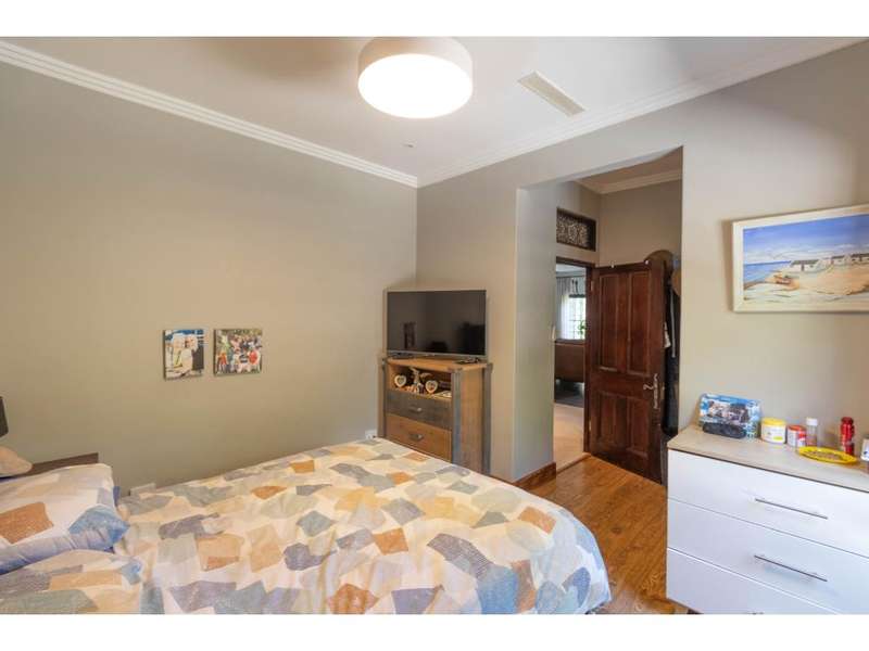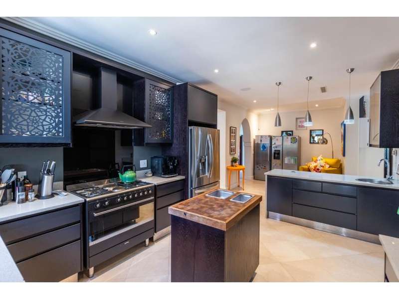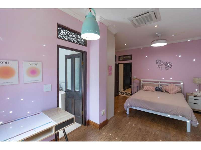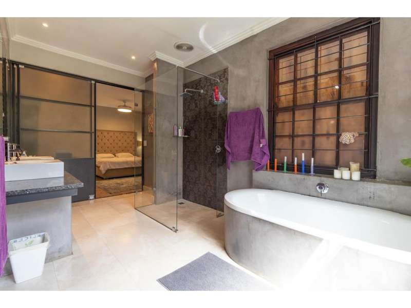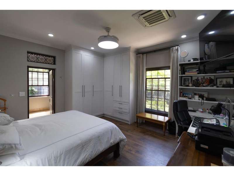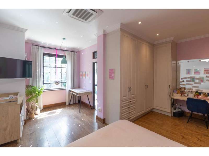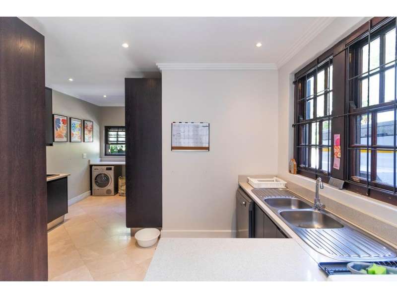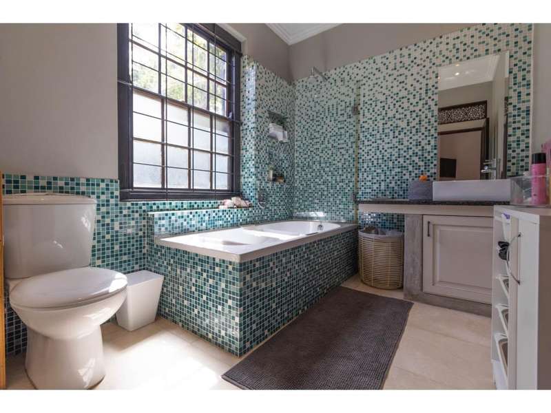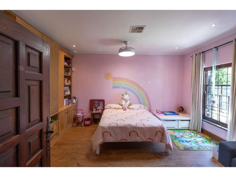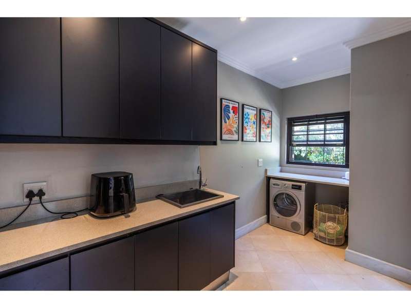 Perched on the slopes of Paarl Mountain, this magnificent 2,200m?? property offers a seamless blend of elegance, space, and natural beauty. Designed for luxurious living, the five-bedroom residence is a true sanctuary, surrounded by lush gardens, a sculpture courtyard, and breathtaking mountain views. Exquisite Bali doors create a grand entrance, setting the tone for the home's sophisticated aesthetic, with shutters adorning nearly every window for privacy and style. The property is fully equipped with modern amenities, including fibre internet, 16 solar panels with an inverter, CCTV cameras, security beams, and abundant secure parking behind an enclosed gate. For added convenience, four large water tanks?Çöthree at 5,000L and one at 1,200L?Çöensure ample irrigation supply. The home boasts a grand family room with a cozy fireplace and wooden floors and window frames, perfect for gatherings, while the dining room, adorned with American shutters, opens onto a serene garden area featuring a tranquil water feature and swimming pool. An expansive covered braai area makes alfresco entertaining effortless. The heart of the home is an elegantly designed kitchen, featuring high-end Caesarstone countertops, a premium Smeg stove, a walk-in pantry, a scullery, and a storeroom with a built-in Vacuflo system for ultimate convenience. The main bedroom is a private retreat, boasting a walk-in closet and a beautifully decorated en-suite bathroom with underfloor heating and exquisite finishes. 4 Additional bedrooms provide comfort and style, each fitted with air conditioning and ceiling fans. With 2 of the rooms enjoying their own en-suite bathrooms, while the remaining 2 share a well-appointed 4th bathroom. Ample built-in cupboards, striking wall features, and a guest toilet enhance the home?ÇÖs refined character. A charming two-bedroom cottage sits separately on the property, featuring an open-plan kitchen and lounge that flows onto a private stoep and a small, tranquil garden, making it ideal for guests or extended family. This property offers a double garage and additional parking for at least 6 more vehicles. This exceptional home is located in a picture-perfect setting in the heart of the Winelands, just steps from Paarl Girls High and within walking distance to Boys High, offering a rare combination of countryside serenity and accessibility to top schools, restaurants and coffee shops. With scenic mountain trails and lush surroundings, this home is perfect for those seeking a spacious retreat with an abundance of character and charm. Looking forward to treating you to a viewing of this beautiful property.