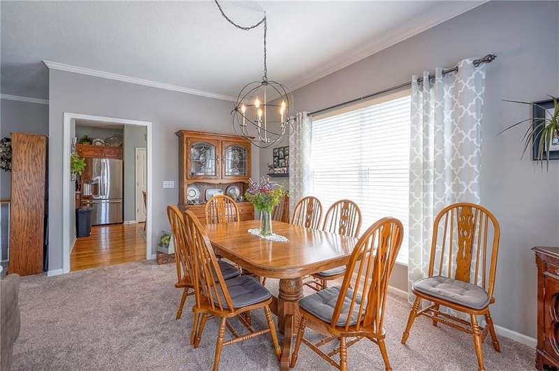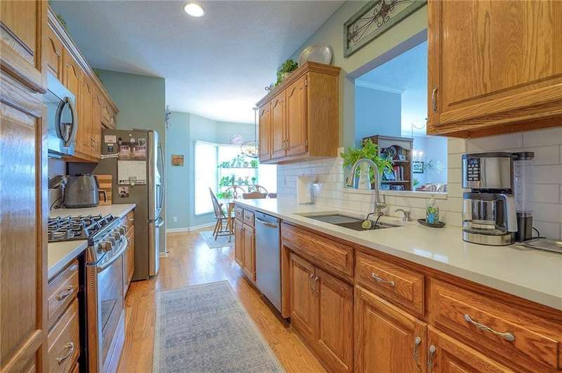 Beautiful maintenance provided home with no age restrictions and low HOA fees at an affordable price! These don't come up for sale often so don't miss it! Just the right size for living and entertaining or hosting. Nice upgrades such as gas range, white quartz countertops, updated lighting and more. Lots of dining space with large eat in kitchen and formal dining area. Main level living with large primary suite, 2nd bedroom, and laundry on the main level. Multipurpose space downstairs with 3rd bedroom and half bath. Walking distance to shops and amenities. Close to all downtown Lee's Summit has to offer!