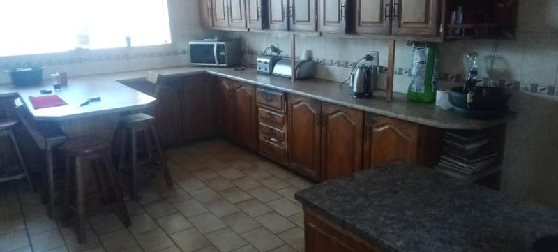 This home is situated in a restful, pretty suburb where owners are friendly and happy. It is nestled on a large plot and is close to all amenities. It consists of 3 spacious bedrooms of which the main is en suite. The second bathroom has a shower, bath, washbasin and toilet. Currently the study is used as an extra fourth bedroom. The kitchen is any lady's dream with lots of cupboards and space as well as all the goodies. Further it has 2 living areas and a separate dining room. The double garage has automatic doors and working space. An entertainment are with lapa, a braai and a well sized swimming pool welcomes visitors. Please call me to view