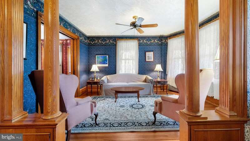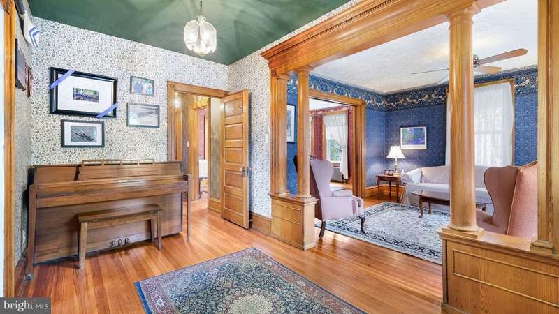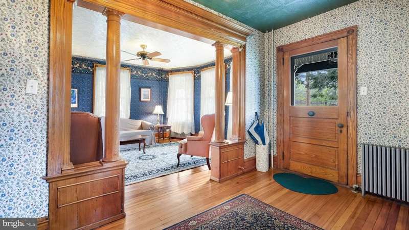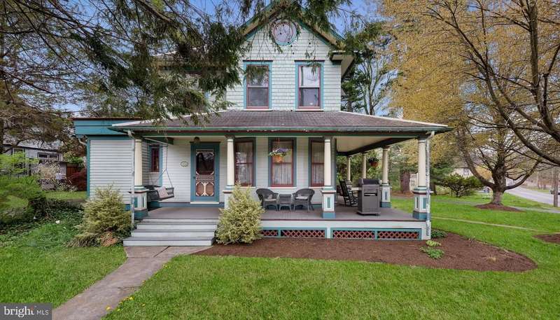 Back on the Market! Charming Victorian in Historic Wycombe Step back in time with this beautifully maintained Village Victorian, perfectly situated on a spacious 0.50-acre corner lot in the heart of historic Wycombe. Overflowing with character, this home showcases original hardwood floors, intricate woodwork, and classic pocket doors that reflect the timeless charm of a bygone era. The remodeled kitchen (2008) blends modern convenience with period style, featuring custom cabinetry that cleverly conceals all appliances for a seamless look. Just off the kitchen, the cozy family room invites relaxation with a custom built-in entertainment center and ceiling-mounted surround sound-perfect for immersive movie nights.A first-floor office offers flexible space for working from home, located just around the corner from a full bath. Upstairs, you'll find four spacious bedrooms and another full bath, each room exuding unique Victorian charm-from detailed ceiling work to vintage door stoppers. Located with easy access to all major roads, this home offers the perfect blend of small-town history and commuter convenience.