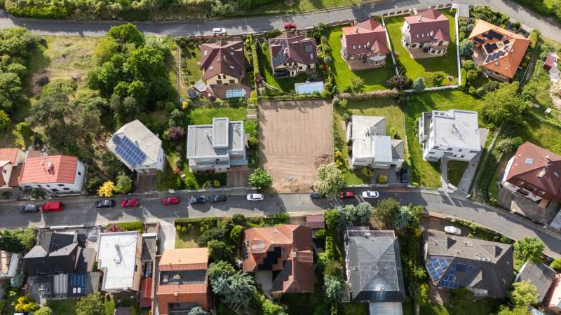 In a quiet street with surrounding family homes, all necessary utilities are available. Local water supply, sewage, electricity, and gas are directly on the border of the plot. The area is equipped with all civic amenities - shops, schools, kindergartens, restaurants, bus, and tram transport.