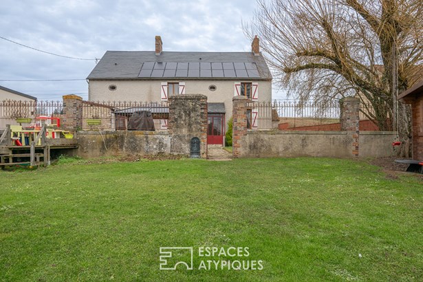 The outbuilding, a more recent construction, offers from the entrance a beautiful bright living room that can accommodate a kitchen open to a living room, dining room. A second space allows you to imagine a master suite. Today converted into a shop and workshop, it is also ideal for a professional activity.