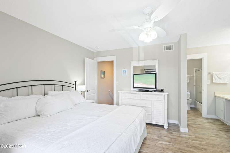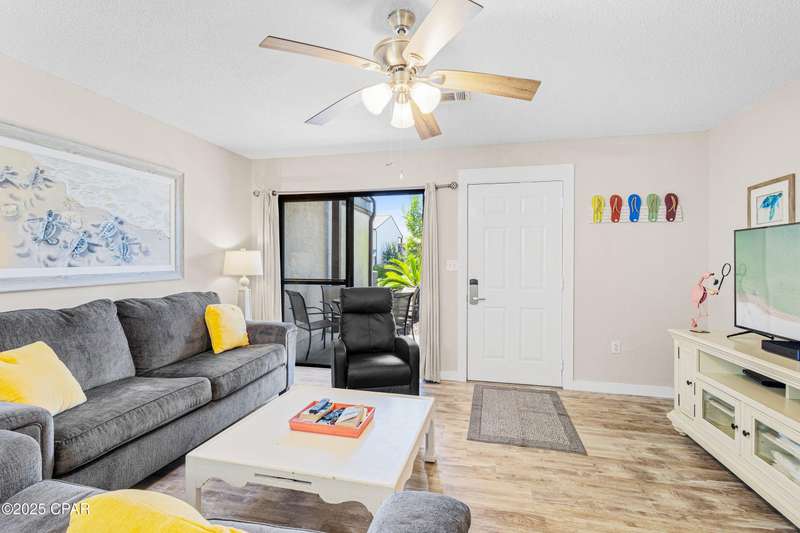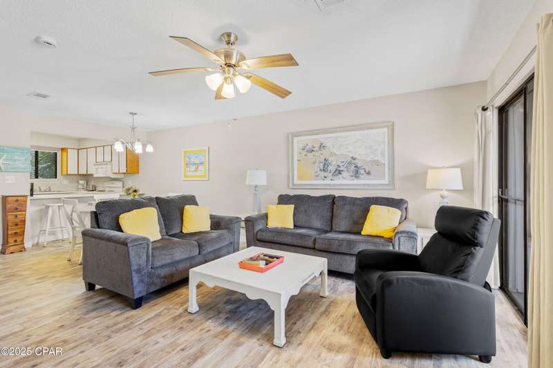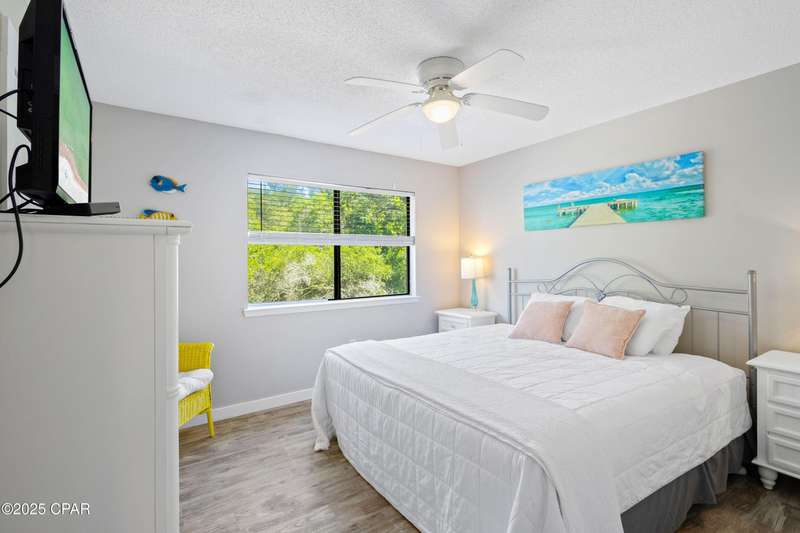 Well-maintained and tastefully upgraded condo located in the tropical resort community of Portside--just across from the beach with direct access and only minutes from Pier Park. Enjoy resort-style amenities including three swimming pools (one heated), a hot tub, tennis courts, shuffleboard, and a clubhouse. This unit is nestled in one of the most private areas of the resort, offering peace and quiet. Sold fully furnished and rental-ready, it features recent upgrades such as luxury vinyl plank flooring, new furniture, fresh paint, and more. Don't miss out--schedule your showing today!