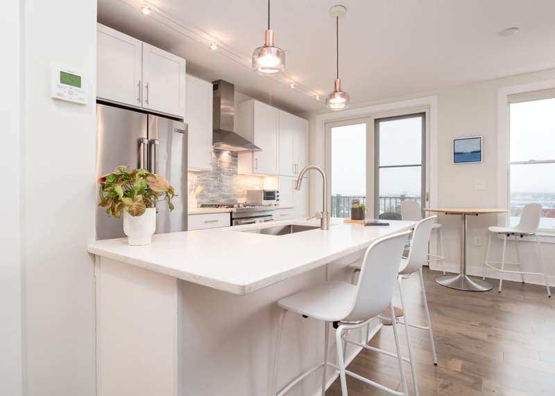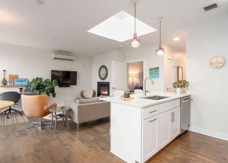 In immaculate condition, this absolutely adorable top-floor one-bedroom/one bath unit offers harbor views. Located in the historic India St. neighborhood within walking distance of Portland's best restaurants, museums, galleries, and coffee shops. Airy and bright with skylight, fireplace, private deck, and deeded garage parking with EV charger. Additional storage unit and shared terrace.
