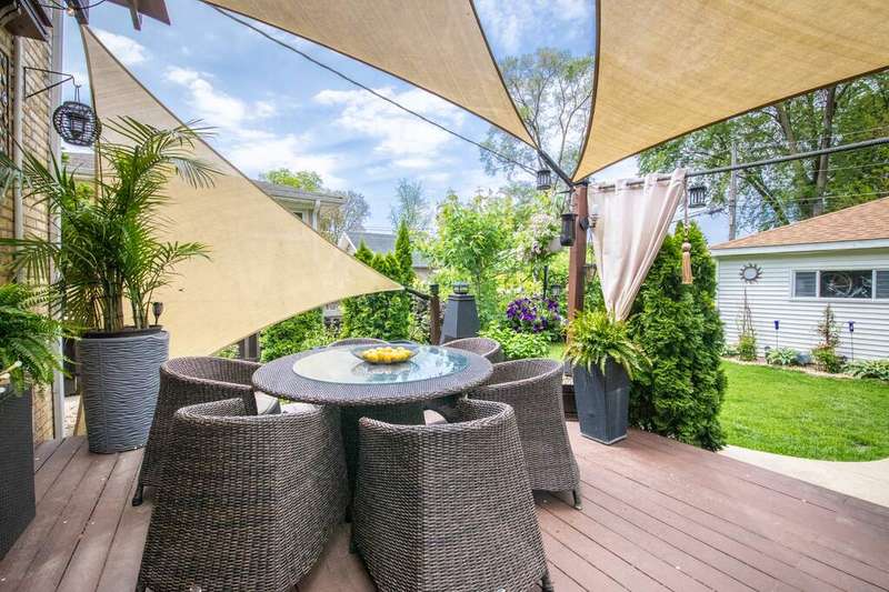 Your Everyday Getaway in Morton Grove! Step inside this charming 3BR/1.5BA Georgian and feel instantly at home. Sunlight fills the spacious living room, flowing effortlessly into a warm dining space and a fully remodeled kitchen (2020-2021) with sleek stainless steel appliances and a custom island-the perfect spot for morning coffee or casual meals. Open the back door and you're greeted by your own private retreat: a rebuilt deck (2020), freshly painted (2025) overlooking a beautifully landscaped (2023) and fenced (2020) backyard . Mature plantings and vibrant gardens offer beauty and privacy all year, ideal for summer barbecues or quiet winter mornings with a hot drink. Both bathrooms have been tastefully remodeled (2023), and the basement offers room to relax, entertain, or even add a future bathroom. Thoughtful updates throughout-washer (2023), garage roof (2023)-make this home completely move-in ready. To sweeten the deal, some of the beautiful personal property, including select furniture, will stay with the home. All this, just steps from the North Shore Trail to the Botanic Garden and Freedom Woods for horseback riding. Here, every day feels a little like vacation-without ever leaving home.
