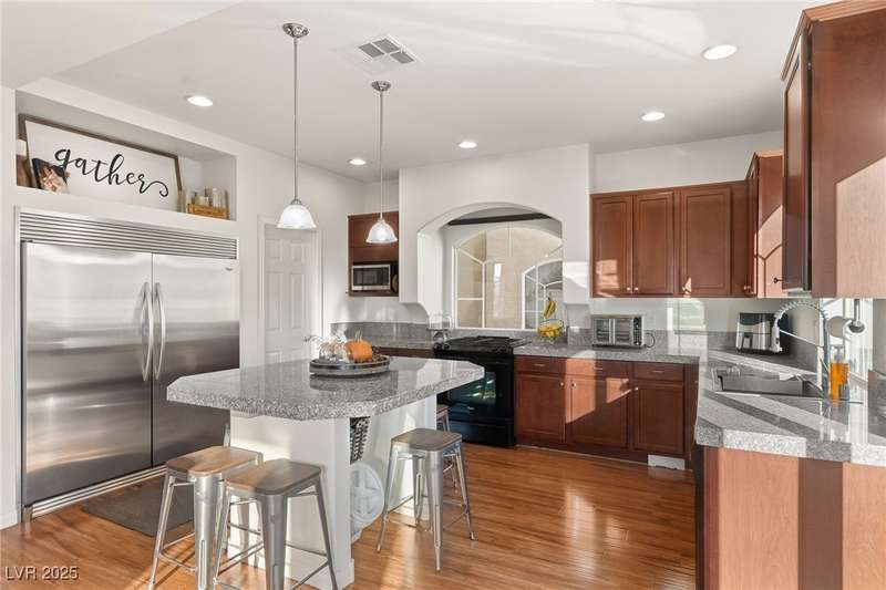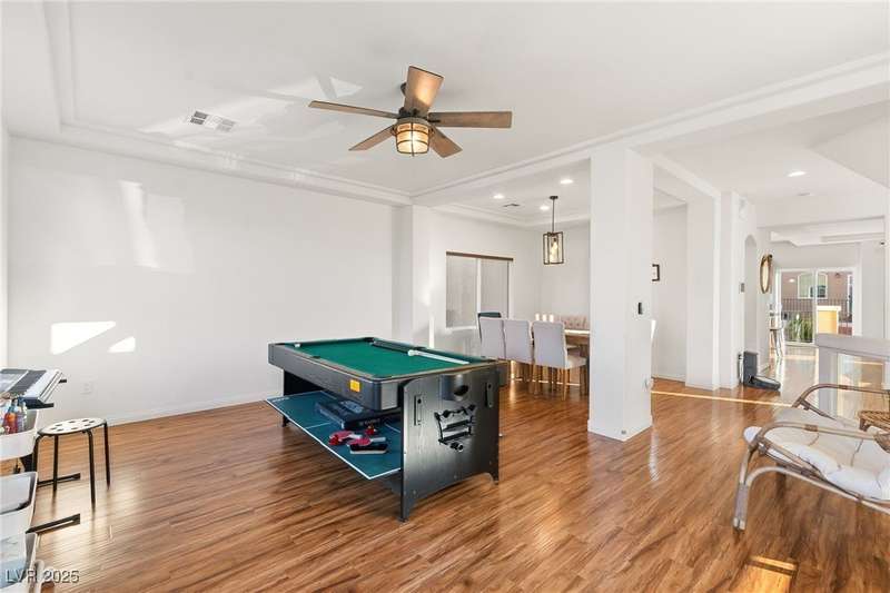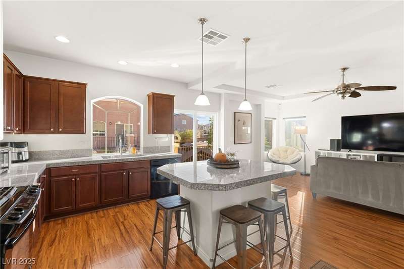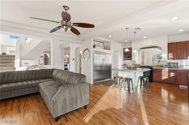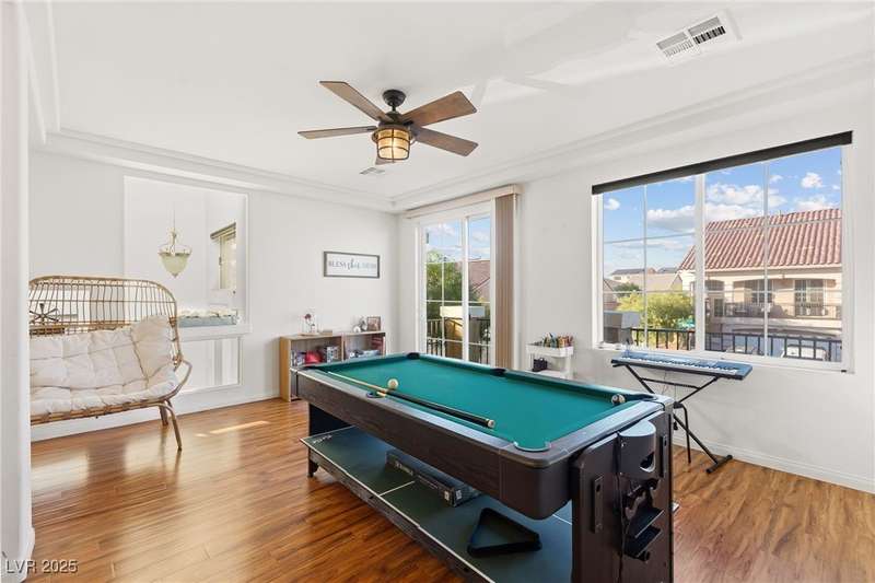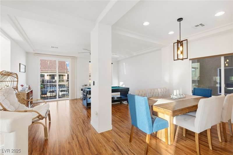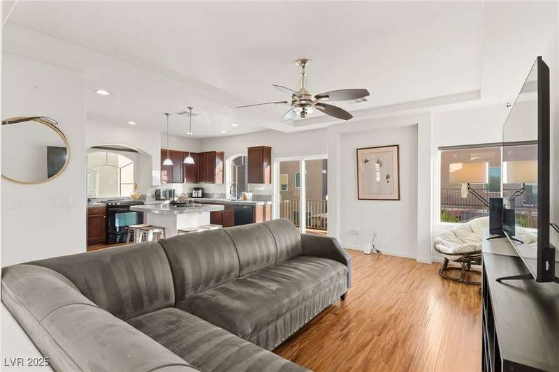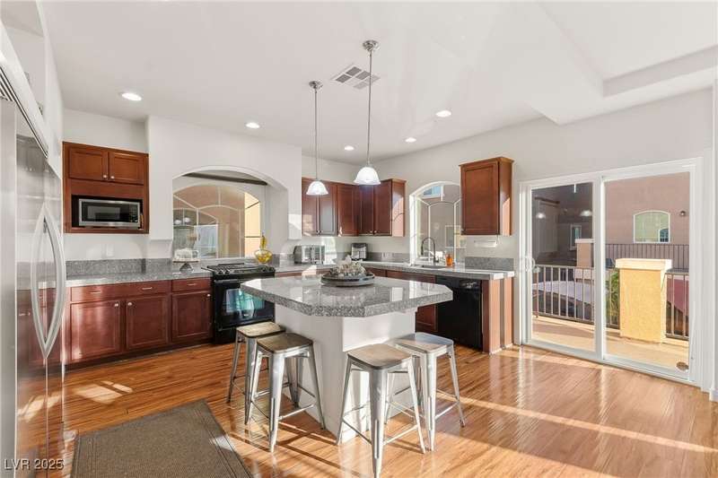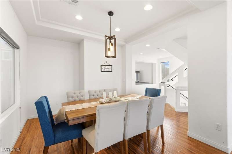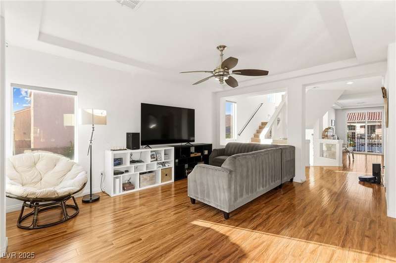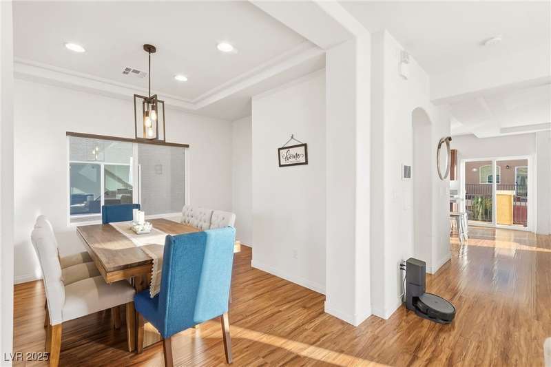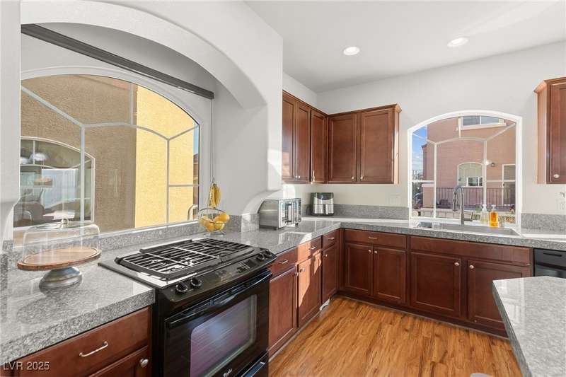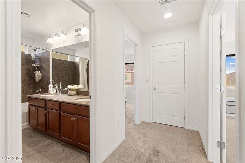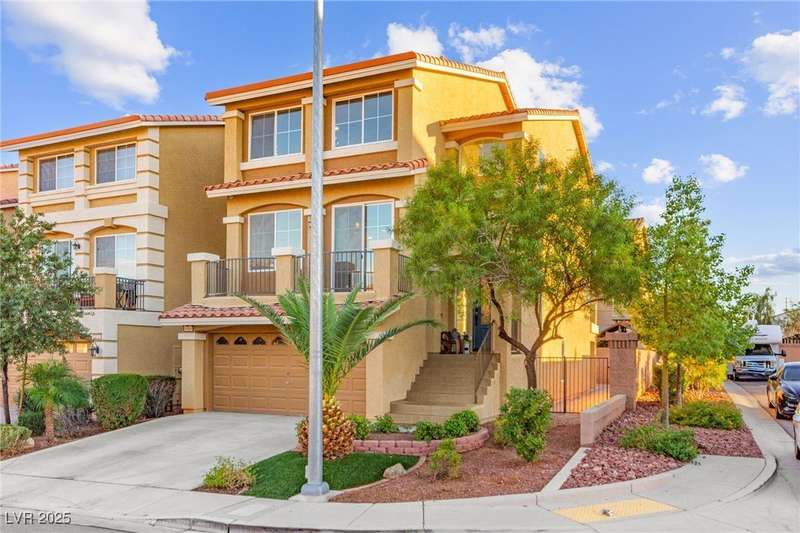 This beautifully upgraded end-lot home offers great curb appeal and a low-maintenance backyard ready for your personal touch. Designed for flexible living, it features two master suites, including a first-floor master with its own family room, accent lighting, and private covered patio—perfect for multi-generational living. Upstairs, the second master includes dual vanities, a walk-in shower, and a spacious walk-in closet. The home includes upgraded laminate flooring on the main level and a gorgeous kitchen with granite countertops and a zero-clearance hinge refrigerator. You’ll also enjoy a second-floor living and dining area with a balcony, plus an additional family room off the kitchen that’s great for entertaining. With pre-plumbing for a central vacuum system, security system wiring, and modern upgrades throughout, this home is priced to sell. Seller offering a $5,000 credit for interior paint.