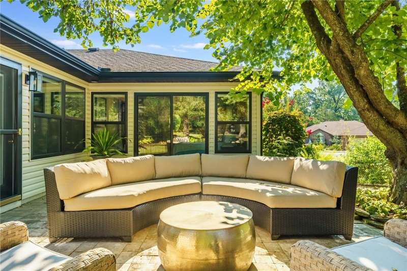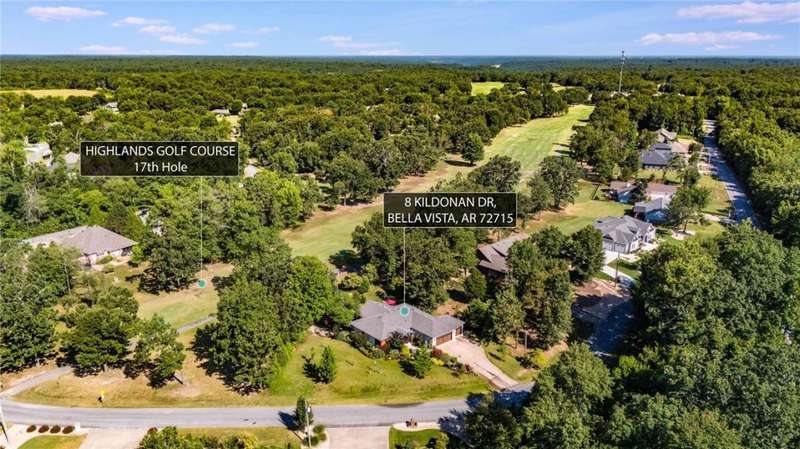 Welcome to a one-of-a-kind home with the finest upgrades for an experience unlike any other! This is a truly special golf-front home on the 17th tee of the Highlands Golf Course! Completely renovated throughout, it offers an all-new kitchen with propane cooktop, custom cabinetry, and an additional island for casual dining. The cozy Living Room features a gas-log fireplace, while the Sunroom showcases spectacular golf course views. The Master Suite includes its own fireplace and a gorgeous new bath with a huge tiled walk-in shower. Step outside to enjoy three separate patios, perfect for entertaining. The park-like setting is unmatched, with professional landscaping spread across two lots totaling nearly �¾ of an acre. A rare combination of elegance, comfort, and outdoor beauty?this home is golf course living at its finest!