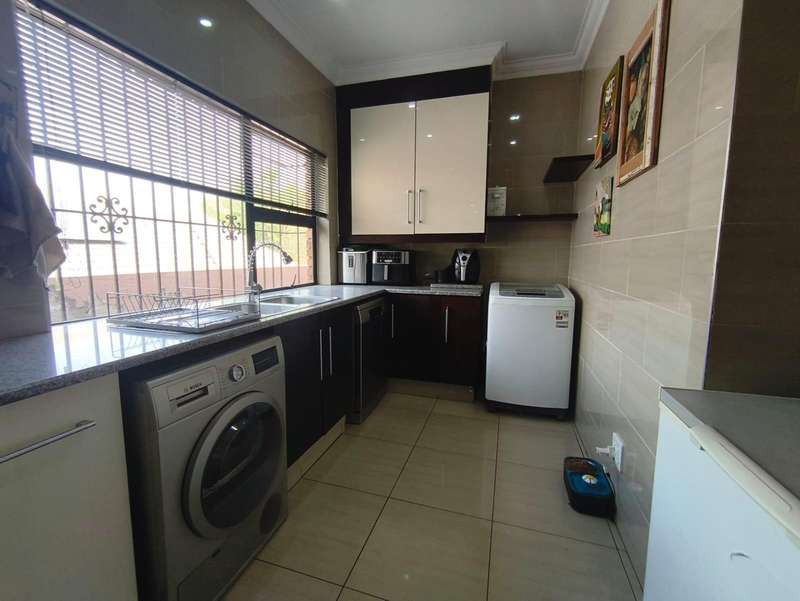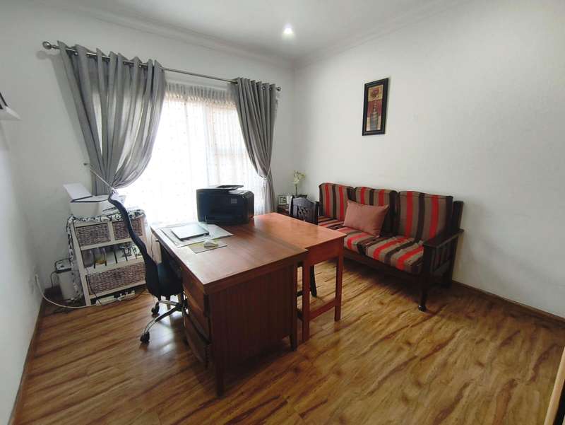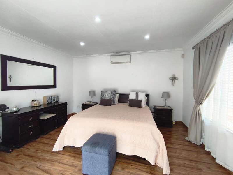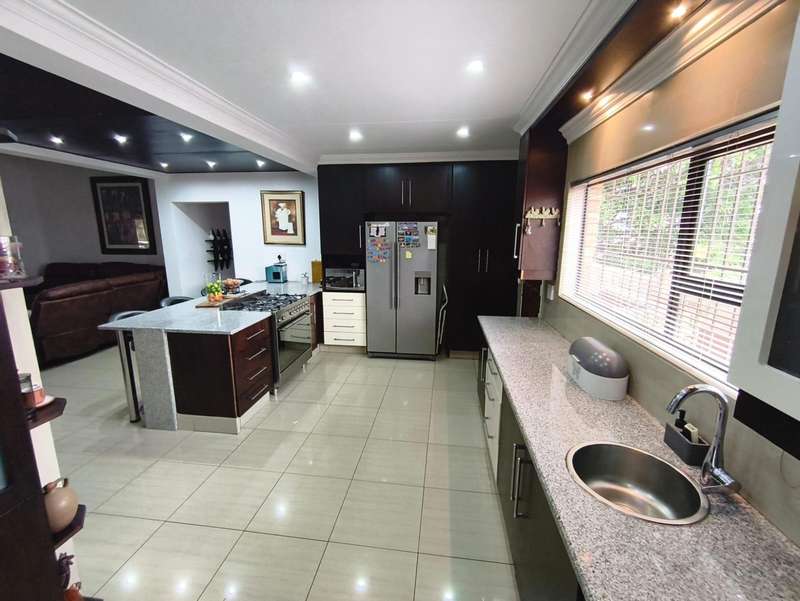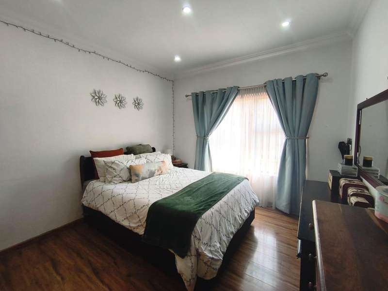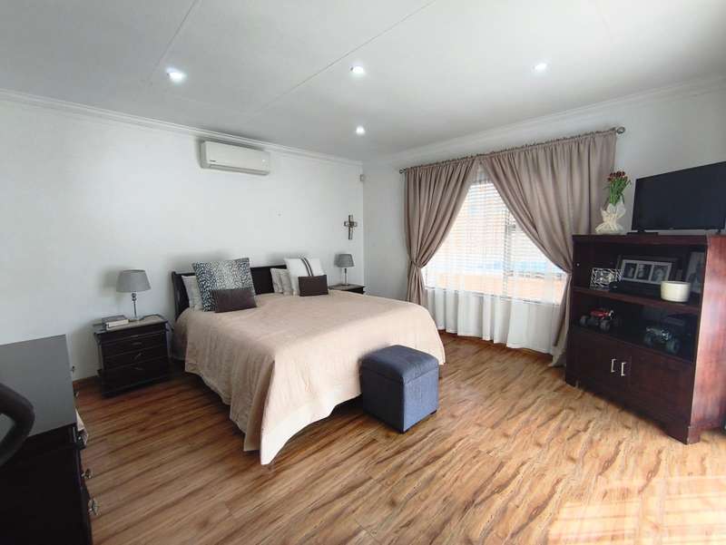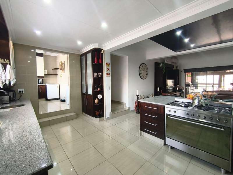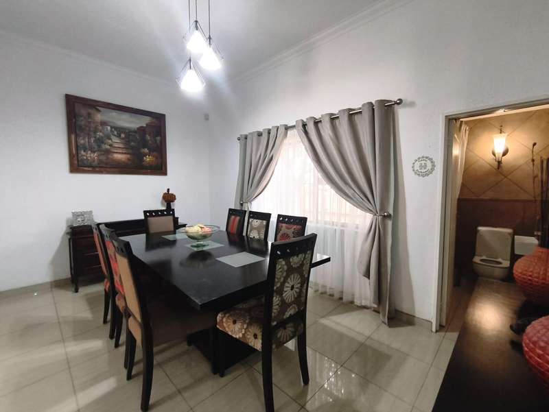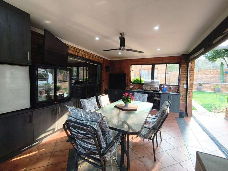 An exceptional modern family home for sale in the desirable Meyersdal neighborhood. This property is perfectly maintained and offers an impressive list of features: * **Accommodation:** Four spacious bedrooms with built-in cupboards. * **Bathrooms:** Two bathrooms, including a luxurious en-suite in the main bedroom. * **Living Areas:** An open-plan layout featuring a dining room and a lounge that seamlessly connects to an enclosed entertainment area. * **Kitchen:** A modern, open-plan kitchen equipped with a gas hob, oven, and a separate scullery. * **Entertainment:** The enclosed area boasts a built-in braai and a kitchenette. Outdoors, you will find a splash pool and a beautifully maintained garden, along with an additional separate entertainment area. * **Amenities:** The home also includes domestic quarters and a separate storage room. Air conditioning is fitted in the main bedroom and the lounge. * **Parking:** A double garage and additional carports provide ample extra parking. * **Security:** Peace of mind is ensured with an electric fence, an alarm system, and burglar bars. Centrally situated in the heart of Meyersdal, this home provides easy access to all local amenities. Do not miss the opportunity to view this well-kept property. Please contact me today to arrange a viewing.
