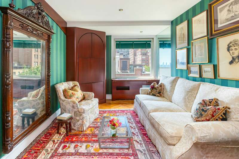 Located in a distinguished prewar cooperative in prestigious Beekman Place, Apartment 7B is a seven-room home offering East River views, timeless architectural details, and exceptional versatility. The layout is currently configured as a 2-bedroom plus Library, home office, and 2 baths, offering the flexibility to function as a 3-bedroom with home office and 2 baths. An inviting foyer and gallery with a curved entrance sets a gracious tone, leading into an oversized living room measuring over 14" x 25'. South-facing windows fill the space with light and showcase views of tree-lined Beekman Place and the East River. A wood-burning fireplace with antique hand-carved mantel, and original herringbone hardwood floors, add character and warmth.The formal dining room easily accommodates a table for ten, yet remains comfortable for intimate dinners. Handsome mahogany built-ins provide display space for china and glassware. The windowed kitchen has room for a breakfast table or center island and includes deep storage for larger or seasonal items. The primary bedroom is generously proportioned with two walk-in closets and a private en-suite bath. The second bedroom features a wall of closets and easy access to the second bathroom, which also serves the library or third bedroom. The home office is thoughtfully designed with mahogany built-ins and a Murphy bed, offering both productivity and guest accommodations.