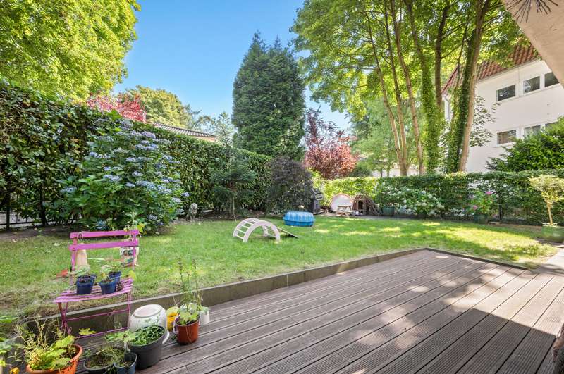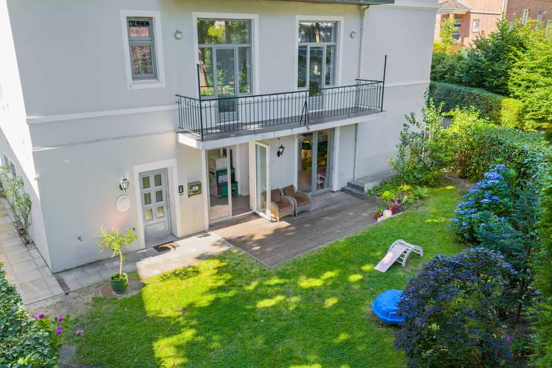 For sale here is a particularly charming apartment in an old building right in the heart of Blankenese with a living space of approx. 125 m². The apartment is located on the garden floor of an art nouveau villa from 1909 with a total of five residential units. An exclusive home for families, couples and lovers of something special. The well thought-out room layout comprises 4.5 rooms, which radiate a warm and cozy atmosphere with their high-quality floorboards. High ceilings and large windows facing north and west give the rooms a bright and friendly light. A bathroom with bathtub and window, a guest WC, a fitted kitchen with access to the terrace and garden complete the floor plan. The apartment also has a utility room (HWR), which offers additional storage space. The apartment also has a cellar room and an outdoor parking space, which is included in the price. An underground parking space is also available, which can be purchased for EUR 30,000. The apartment is currently rented reliably and the monthly net rent is EUR 2,405.00. See this stylish apartment for yourself and arrange a viewing today. We look forward to presenting this unique property to you. Please understand that we will only respond to inquiries with a full name, address and, above all, telephone number.