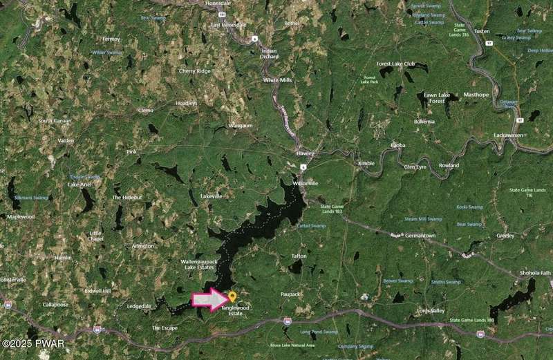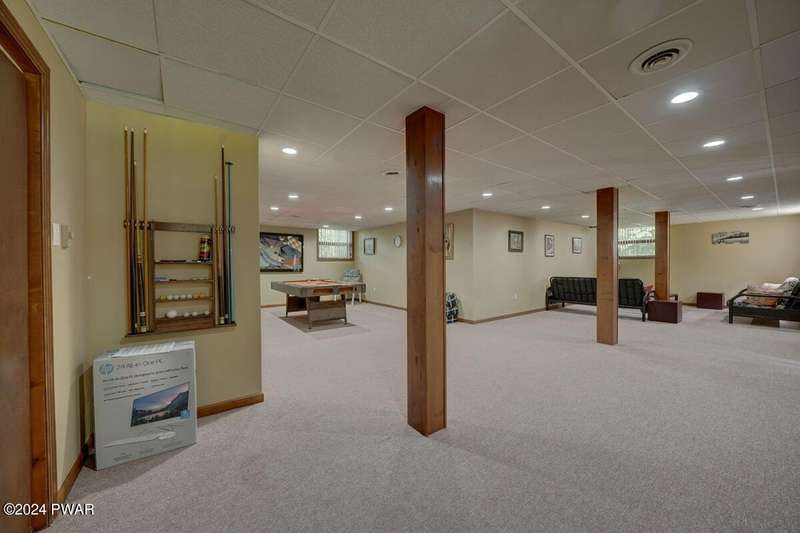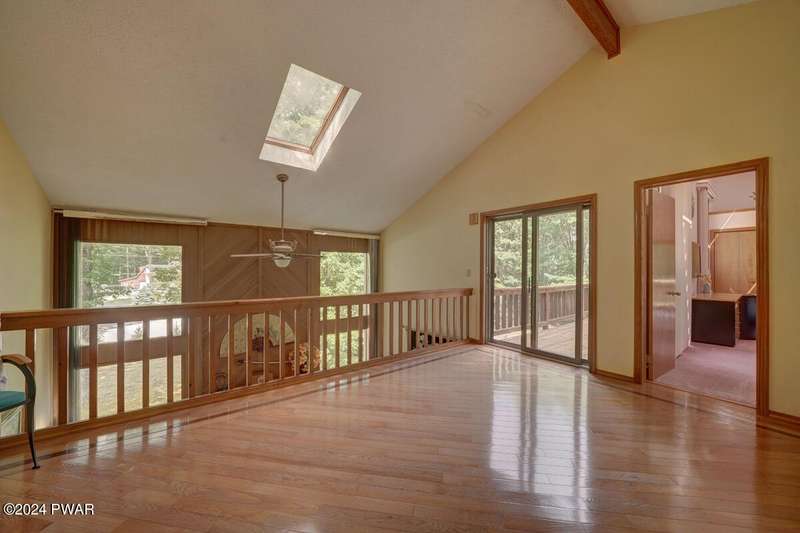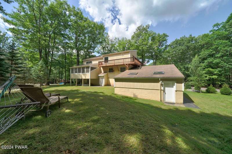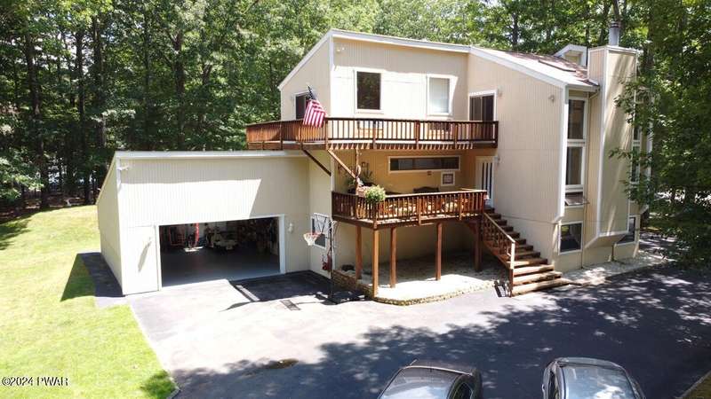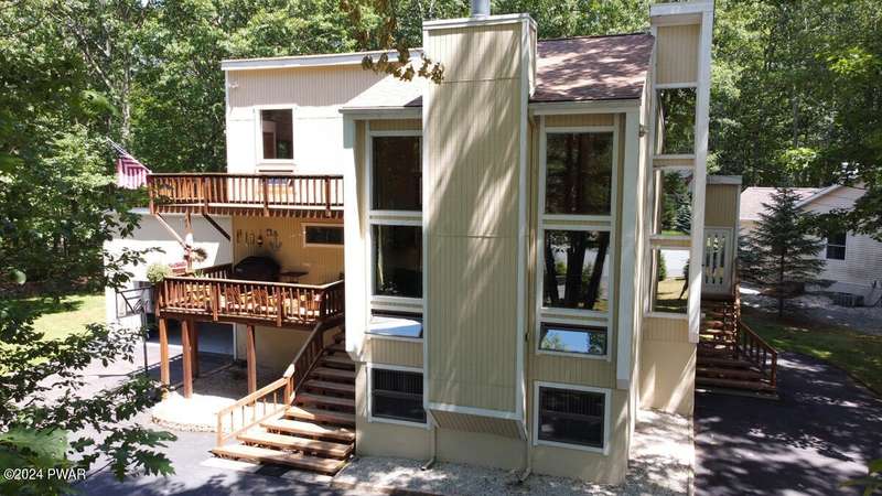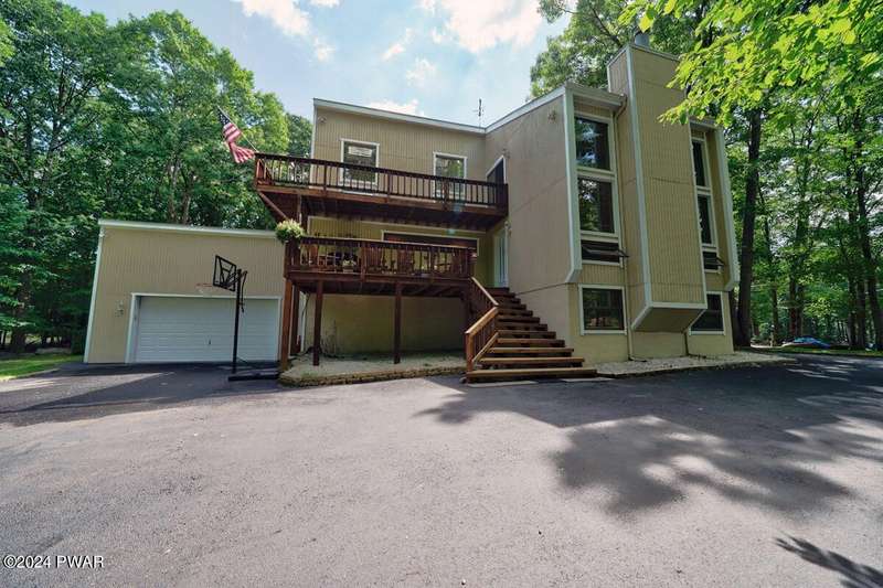 Prime Tanglwood Lakes Location - Steps from Golf, Tennis, and Lake WallenpaupackThis spacious contemporary home offers 4 bedrooms, 2.5 baths, and a bright, open layout with soaring ceilings. The living room features a cozy fireplace, while the sunroom provides serene views of the nearby tennis courts. A generous loft adds versatile living space, and wrap-around decks on every level create ideal areas for outdoor relaxation and entertaining.The home also includes an attached oversized 2-car garage with high ceilings--perfect for boat storage--a paved driveway, and a fully finished walk-out lower level complete with a family room and game area. Just a short walk to the golf course, tennis courts, and the Lake Wallenpaupack beach and boatslip area, this property is the perfect blend of comfort, space, and location.