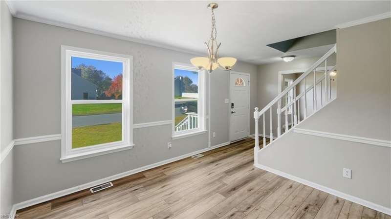 Welcome home! Don't miss out on this gorgeous 5 BR 2.5 Bath transitional home on LG corner lot in Great Bridge. All new paint, New Carpet, new beautiful laminate flooring and carpet throughout. Huge fenced backyard w/ decking - great for entertaining. Front & Back staircase, 2 car garage. Plenty of storage! LG Kitchen w/ granite countertops. Come check it out QUICK