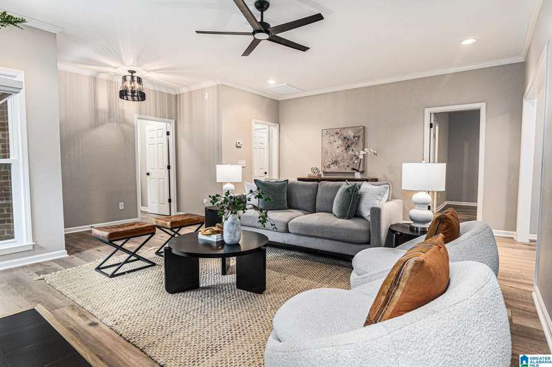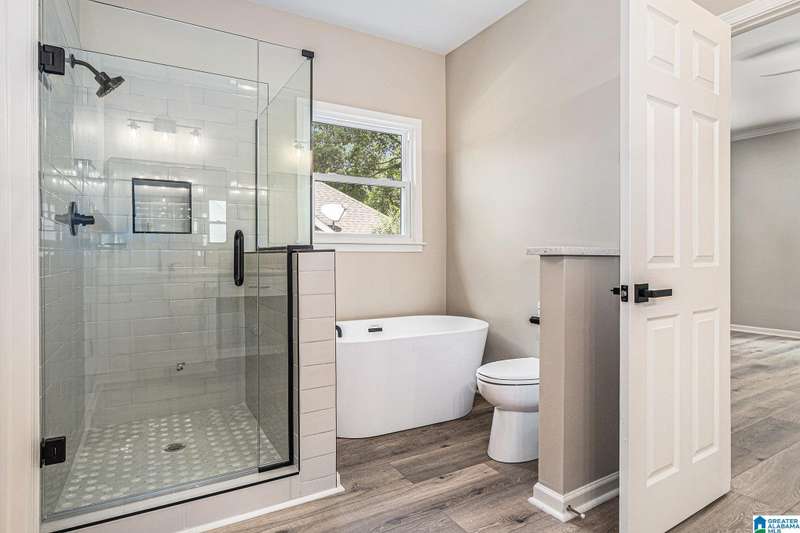 This stunning home has just had a total makeover! There is beautiful wide plank flooring that is newly installed throughout. The kitchen is impressive with all new cabinetry including 42 uppers, a farmhouse sink, high-end stone countertops, and all new appliances including the fridge. The massive primary suite is complemented by the new primary bath with freestanding soaking tub, gorgeous tiled shower, and large double vanity with knee space. The split bedroom plan is perfect for guests, there is a door between the living room and hallway to make the guest room a private en suite. The garage is spacious and provides room for two large vehicles. The flat backyards is private, and the entire yard has been freshly sodded/landscaped. All windows are new, HVAC is new, water heater is new, lighting is new, and roof is newer. Schedule your tour today!