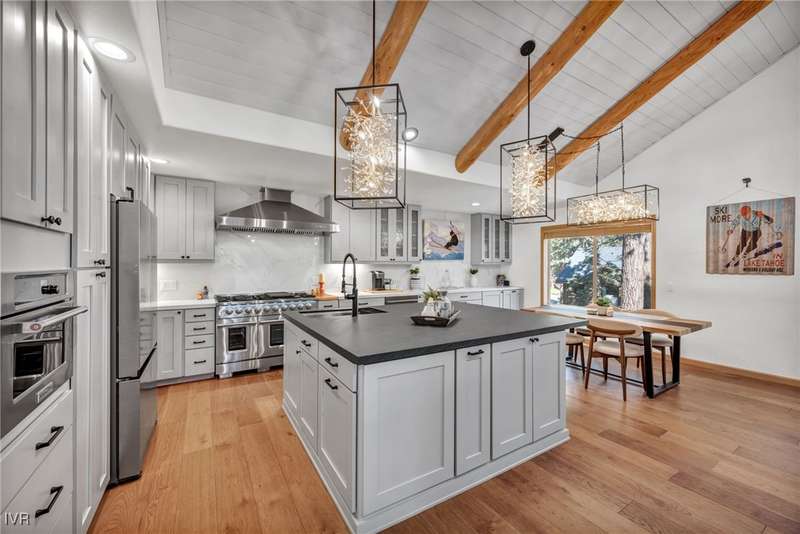 This fabulous furnished mountain home features an efficient open floorpan that sits on a flat, fully fenced landscaped lot in a quiet cul-de-sac backing to US Forest service land. On the entry level you will find 2 guest bedrooms, one with slider access to the back yard, a large brand new guest bath with a walk-in shower & a laundry closet with new clothes washer, dryer & shelving. The main living level has gorgeous French Oak hardwood floors, vaulted ceilings with real log accents, a wood burning fireplace and a beautifully remodeled kitchen with an impressive gas stove for the cooking enthusiasts in the family. The great room open floor plan makes this a fabulous home for entertaining family & friends. There is a powder room along with your primary bedroom, bathroom and walk-in closet on this level as well. The primary bath offers double sinks, a shower & separate jetted tub for relaxing & unwinding. This home offers full IVGID privileges & allows STR's per Washoe county guidelines.