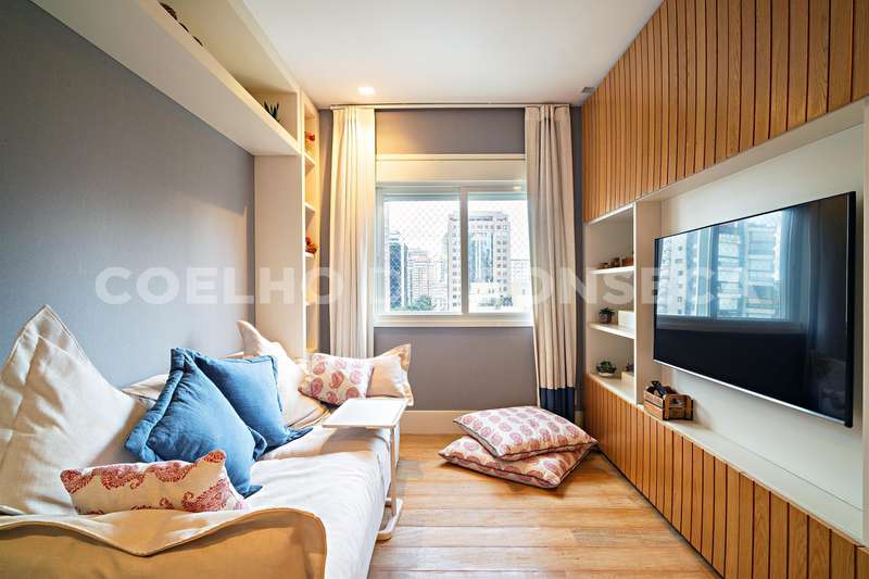 Excepcional apartamento proximo ao parque do povo, amplos ambientes, decorados com extremo bom gosto e qualidade. living e sala de tv, dando para a varanda, trazendo muita luminosidade ao ambiente, piso em tabuas de madeira de demolição. Varanda envidraçada, com lareira e tv proporciando muito aconchego e homeoffice com bela vista. Lavabo. Três dormitórios, sendo a suite master com banheiro e closet, Sr. e Sra. Segunda suite, proprietarios uniram duas transformando em uma suite pra fiha com sala de TV. Facil reversão, pois continuam os dois banheiros e closets. Rouparia no corredor. Sala de almoço, cozinha, dispensa, e area de serviço com armários planejados. Todos os ambientes com ar-condicionado sendo no living, ar-condicionado central que podem ser ligados separadamente. Lazer completissimo. piscina externa e piscina coberta- raia, sauna, quadra de tenis, academia, brinquedoteca, playground, sala de jogos, sala de pilates, sala de balé, 6 vagas de garagem. Imóvel diferenciado!