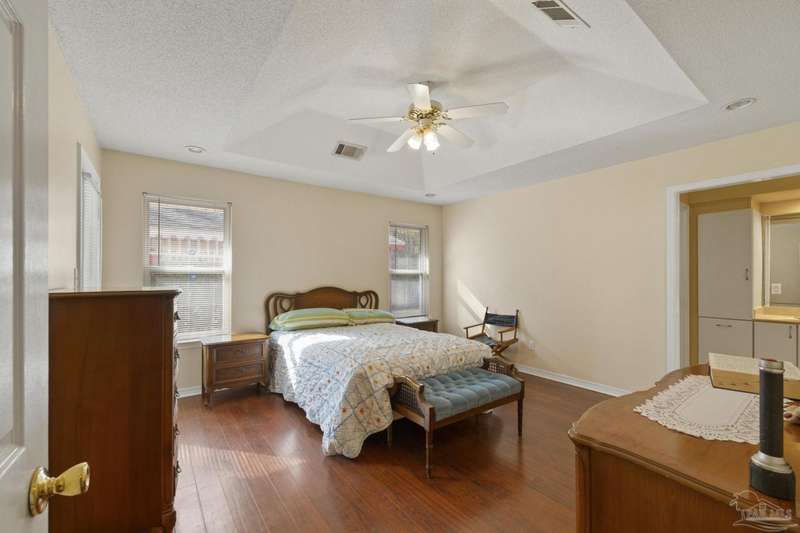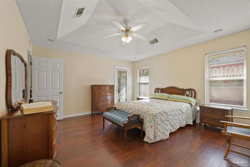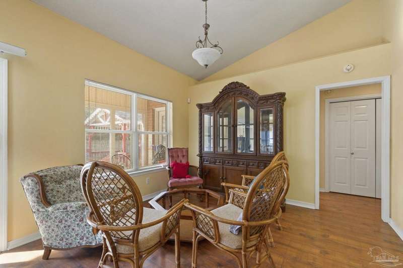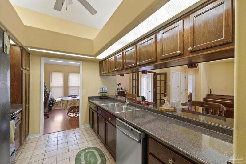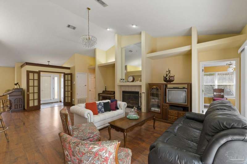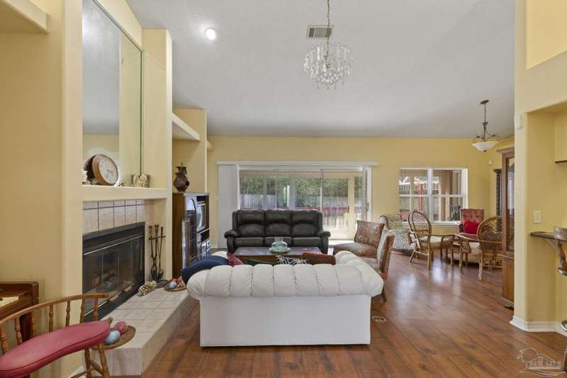 This 3 bedroom 2 bathroom home has 2071 square feet of living space and sits on .3 acres. High ceilings and dark wood-look floors set the stage for elegance and a timeless space that can be designed to your imagination. The kitchen is open to the main living area through the granite breakfast bar, and offers easy accessibility to both the eat-dining area and the formal dining room, making the space perfect for hosting and families alike. The living room is centered by a cozy fireplace and built-ins, and is also bathed in natural light that comes through the large glass sliding doors that lead out into the sunroom on the rear of the home. The master bedroom features stylish trey ceilings, is large enough for a sitting area and has an ensuite bathroom. The ensuite bathroom features both a soaking tub and standing shower, plus an abundant amount of cabinet space for storage. One of the remaining two bedrooms has easy access to the sunroom on the rear of the home and a huge layout with room for a sitting area. Take a tour of this family home today!