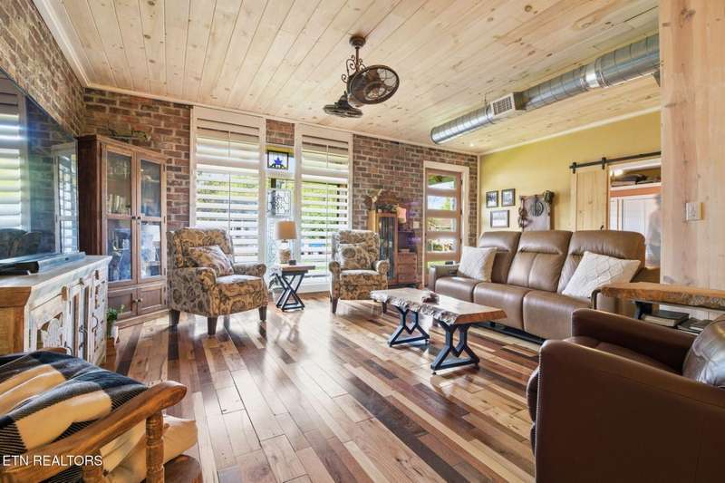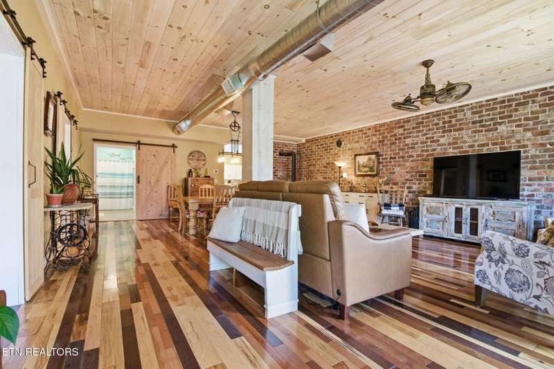 Welcome to 213 Kingston Ave, Oliver Springs, TN 37840.This former neighborhood Grocery Store has been wonderfully repurposed into a beautiful Rustic-Craftsman-Home. When entering the 8ft Front-Door you will be amazed to see the charm & character of this property. Reclaimed Brick-Wall. Tongue & Groove Planked Ceiling. Custom-Built Windows and Plantation Shutters. Rustic Wood Flooring. Exposed Ductwork. Wood-Stove. Sliding-Track Barn-Doors. A wonderful Kitchen with Thomasville Cabinets, Concrete Counter-Tops, Inset Cast-Iron Farmhouse-Sink and Slate Tile Floor. A Stunning Master-Bedroom on the Main with Bath. Beautifully Crafted Huge Glass-Block Shower. Oversized Utility-Room & Flex-Space. Newly Installed HVAC System. Plus, much more... The home has a large Two-Car Detached Garage with Office.$$$ INCREDIBLE-INCOME-POTENTIAL $$$The home has a Unfinished Second Story 3-Bdrm/1-Bath Walk-Up Attic Apartment.Conveniently located to Downtown Oliver Springs and New Oliver Springs Stem Academy. (Middle/High-School).Direct-Access / Come & Go to the Trail-Head at WINDROCK MOUNTAIN/WINDROCK PARK Recreational Area. (Oliver Springs allows ATV/UTVs to travel in town to and from Windrock-Park.)Buyers to confirm all measurements, information and details.