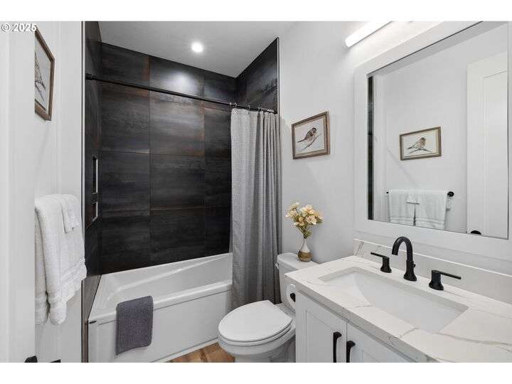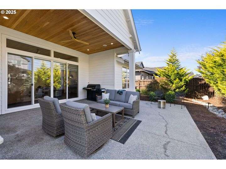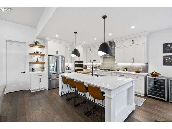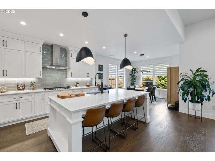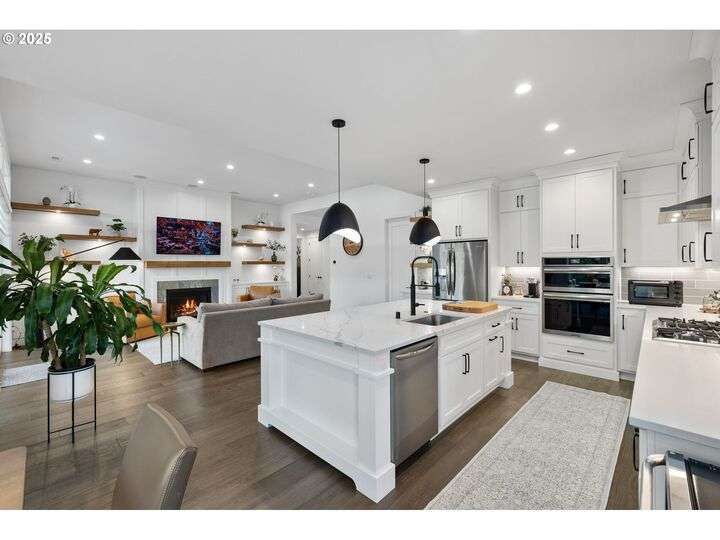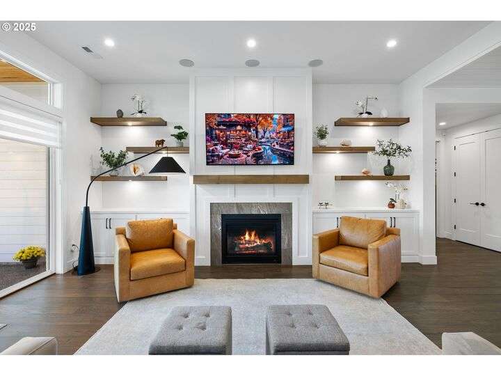 Beautiful 3-bedroom plus office/flex room (easily convertible to a 4th bedroom), 2.5-bath Custom Kingston Home located in the highly sought-after Si Ellen Community and the desirable Hockinson School District.This Energy Star–rated home blends modern luxury with energy efficiency and everyday comfort. The open-concept design features high ceilings, abundant natural light, and elegant finishes. The great room offers a cozy fireplace with custom built-ins, floating shelves, and designer lighting. The chef’s kitchen boasts Frigidaire Gallery appliances, double oven with convection, built-in microwave, large gas cooktop, quartz counters, cook’s island with seating, walk-in pantry, and soft-close cabinets with under-cabinet lighting. Energy-efficient features include a heat pump for heating and cooling, a heat recovery ventilation system, and enhanced HVAC performance. An upgraded low-voltage package provides ethernet in every room and whole-home Wi-Fi capability. The primary suite offers a spa-like walk-in shower, double vanity, and spacious walk-in closet. Secondary bedrooms feature custom closet built-ins, while bathrooms include under-cabinet lighting. Smart home upgrades include motorized window treatments, Ring security system, Nest thermostat, Schlage electronic locks, hardwired connectivity, and an interior/exterior sound system. The oversized 3-car tandem garage includes a mini-split heating/cooling system, epoxy floors, workshop space, and EV charging station. Outdoor living is made easy with a covered patio, gas hookup, ceiling fan, water feature, and mature landscaping. The HOA maintains front landscaping and provides winterization. Neighborhood amenities include a private gated park, playground, basketball courts, and pickleball. With thoughtful upgrades, smart features, and timeless craftsmanship, this home offers the perfect balance of efficiency, comfort, and style.