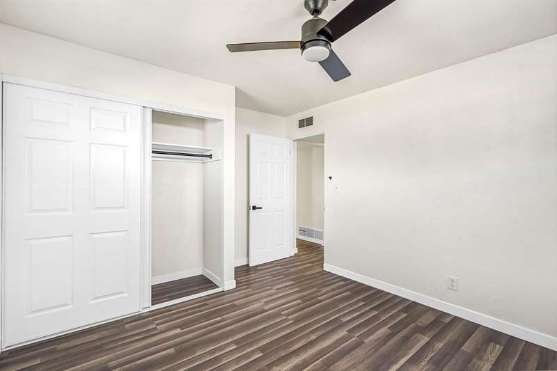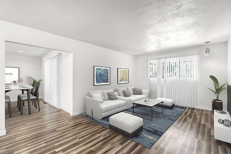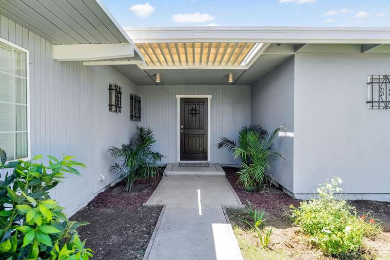 Beautifully Renovated Home on a Spacious Lot. This move-in ready home has been thoughtfully updated inside and out, offering a seamless blend of modern upgrades and timeless charm. Step inside to brand-new flooring, fresh paint, and a fully remodeled kitchen featuring soft-close cabinetry, a striking waterfall quartz countertop, and a new range with built-in bake and air-fry functions. The updated bathroom includes a new sink, upgraded toilets, modern fixtures, and stylish mirrors. Additional interior features include new blinds throughout, remote-controlled ceiling fans in every room, upgraded lighting inside and out, a new front door, updated electrical outlets and panel, and a new garage door. Outside, enjoy fresh concrete in the front and backyard, a sprinkler system in the front yard, new landscaping, repaired gates, and a new mailbox. Situated on a large lot, the property also offers a sliding gate with alley access to the backyard ideal for truck parking or easy rear entry. A semi-new A/C system complete this turnkey home ready for its next owner.
