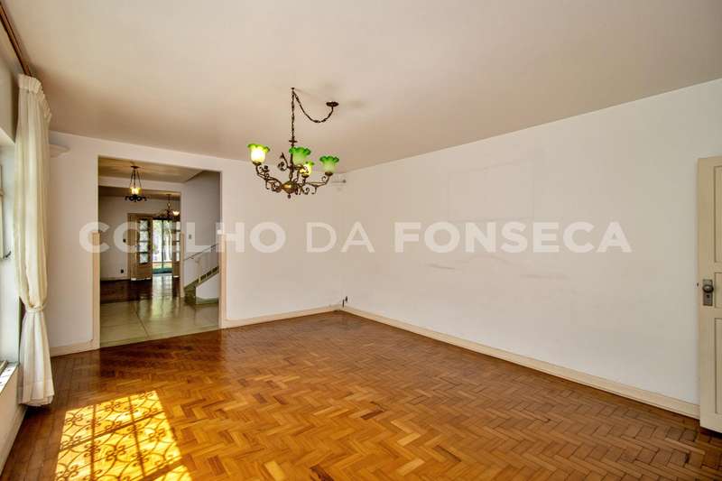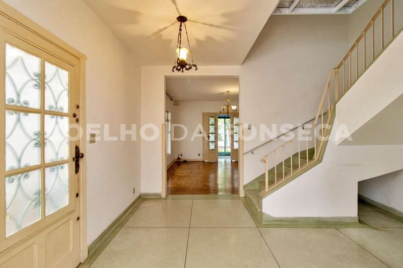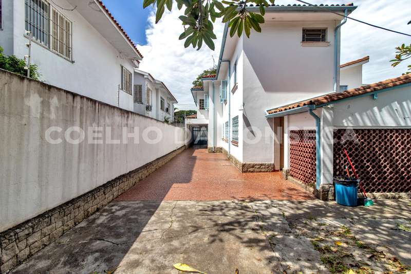 Casa com boa distribuição interna e pé direito alto. Hall de entrada dá acesso à sala de visita com terraço, sala de estar e jantar, sala de almoço e cozinha. Acesso superior aos dormitórios com escada e elevador. Quatro dormitórios, duas suítes (com possibilidade de uma terceira), a suíte master com quarto de vestir e a outra com terraço. Boa circulação interna, banheiro social e possibilidade de criar uma terceira suíte. Amplo quintal com lavanderia e edícula com banheiro. Garagem para 4 automóveis.