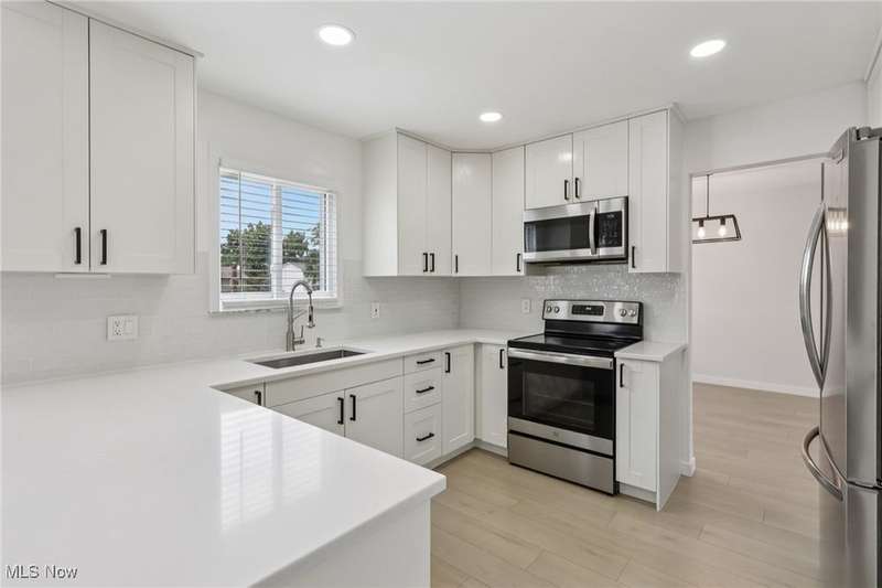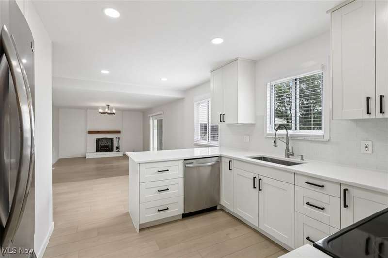 Beautifully Updated Colonial with Spacious Backyard! This stunning 3-bedroom, 3.5-bath colonial blends modern updates with timeless charm. Step inside to find beautiful LVP flooring, updated lighting, and neutral tones that create a bright and welcoming atmosphere throughout. The remodeled kitchen is a showstopper, featuring white shaker cabinets, quartz countertops, stainless steel appliances, and a breakfast bar that opens to the eat-in dining space. The main level also offers a living room, dining room, half bath, and a cozy family room with a wood-burning fireplace and sliding glass doors leading to the covered patio. Upstairs, you'll find three bedrooms, including a spacious master suite with dual closets and a barn door opening to a remodeled en-suite bath with dual sinks and a walk-in shower. A beautifully updated hall bath serves the additional bedrooms. The finished lower level adds even more living space with a recreation room, kitchenette, full bath with shower, and laundry room?perfect for entertaining, guests, or multi-generational living. Enjoy outdoor living in the expansive, fully fenced backyard, complete with a newer shed and plenty of room to play, garden, entertain or relax. Peace of mind comes with numerous recent updates, including a newer electrical panel (2020), roof and siding (2015), windows (2020), insulated garage door (2025), appliances (2022), fresh carpet (2025), and more.Move-in ready and thoughtfully updated, this home truly has it all!