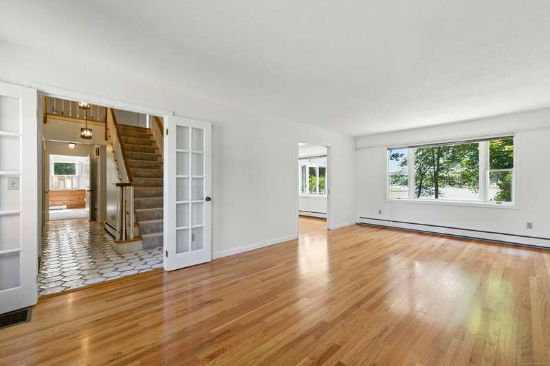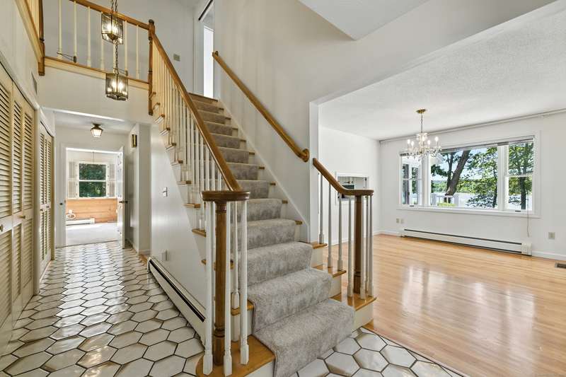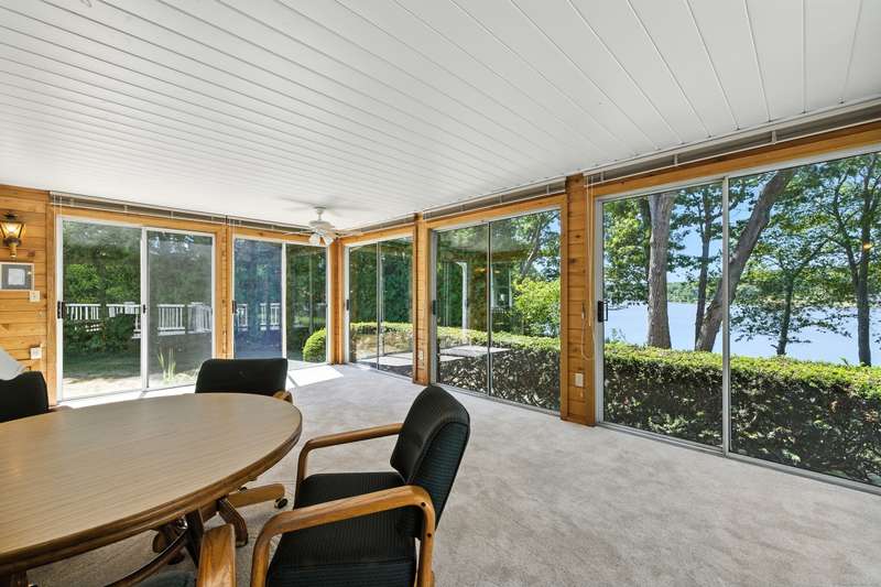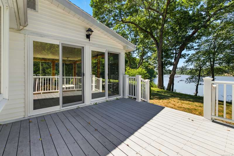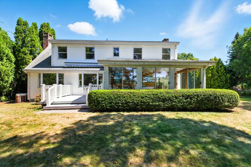 A remarkably rare offering along the coveted Mystic River, better than riverfront, this gracious residence pairs timeless design with gorgeous water views-magical at any hour, unforgettable at sunset. Just steps away, access to the waterfront landing to launch your kayak or canoe encourages you to fully enjoy the coastal lifestyle. Perfectly sited to capture light, scenery, and serenity, the home's generous proportions offer both comfort and sophistication. A spacious Living Room with wood-burning fireplace flows through French doors to the formal Dining Room, both enhanced by lovely hardwood floors and large windows that frame sweeping river vistas. The riverside sunroom, wrapped in glass, creates a luminous retreat for relaxation or gathering, while the family room with its second fireplace adds warmth and versatility. The spacious eat-in kitchen and a convenient main-level laundry complete the thoughtful layout. Upstairs, there are 3 expansive bedrooms complimented by 2 full baths,