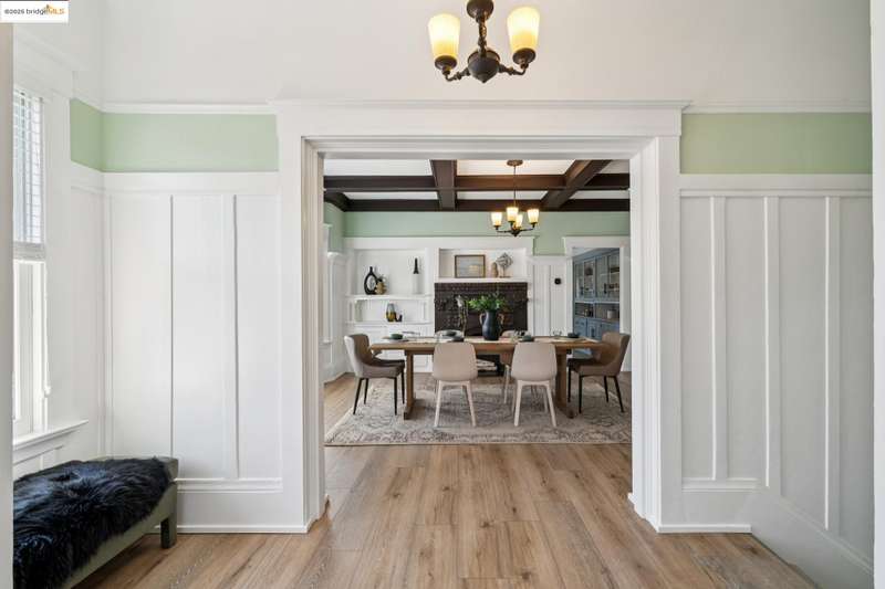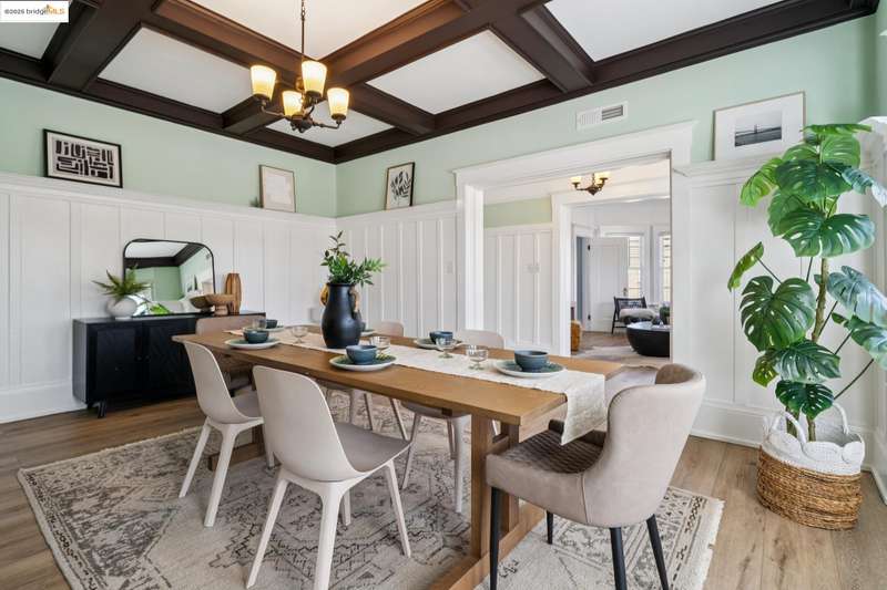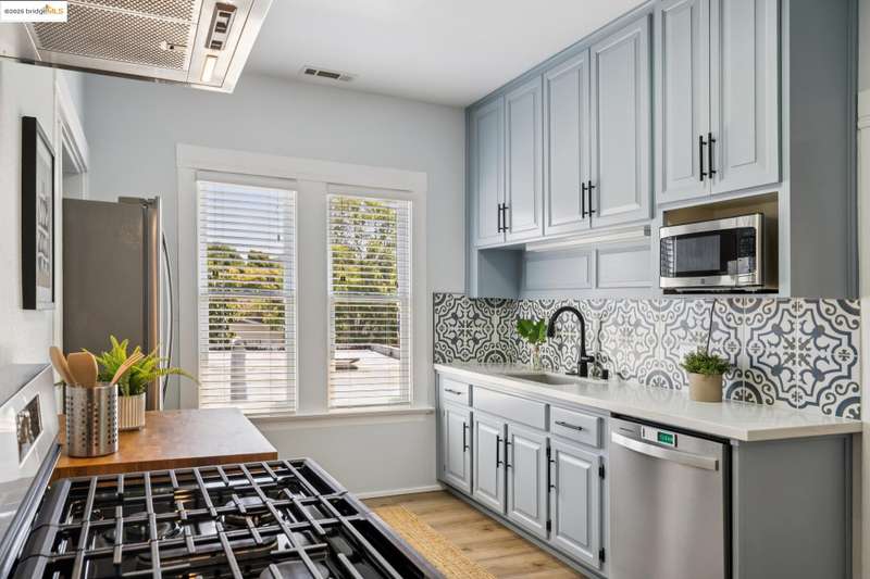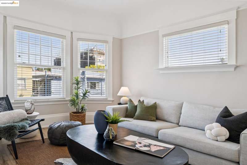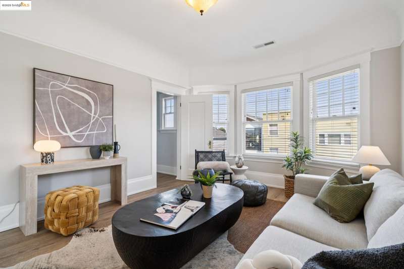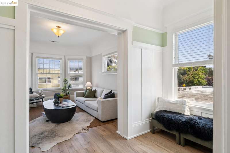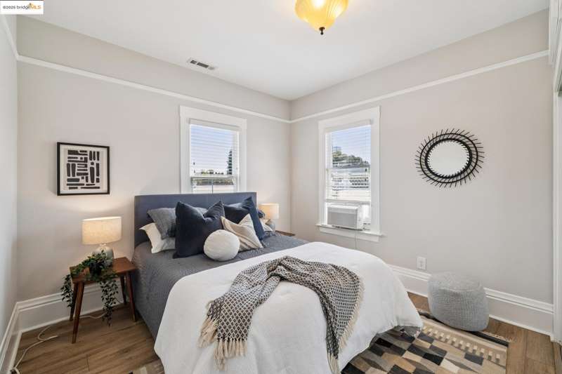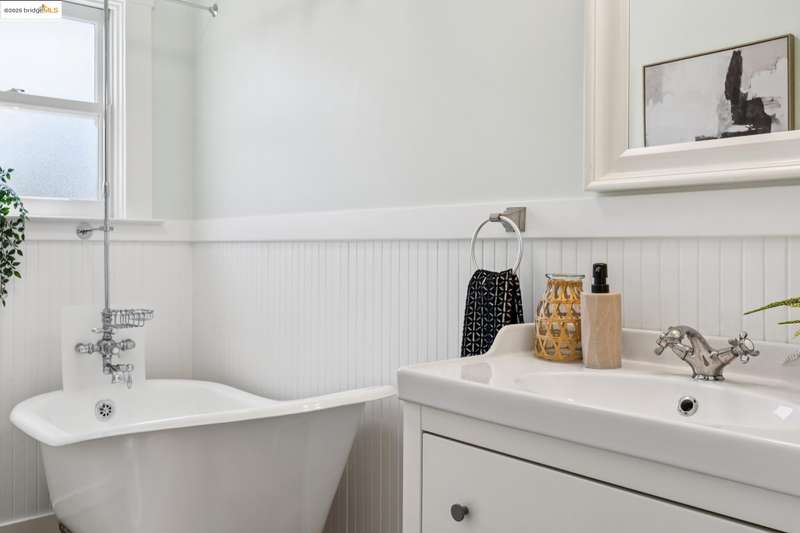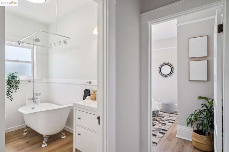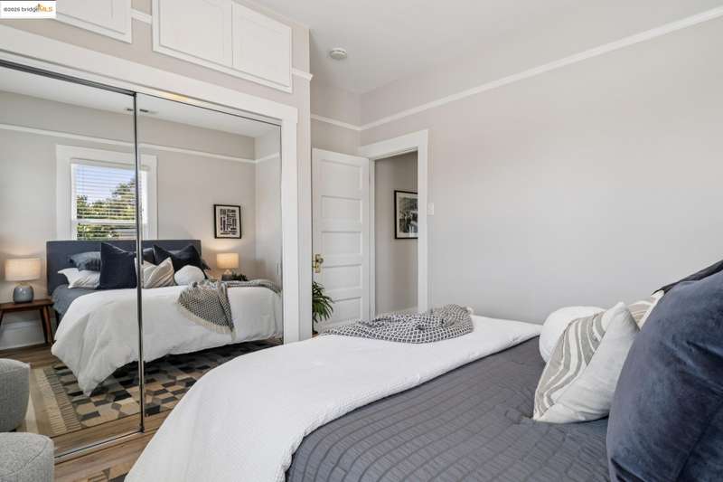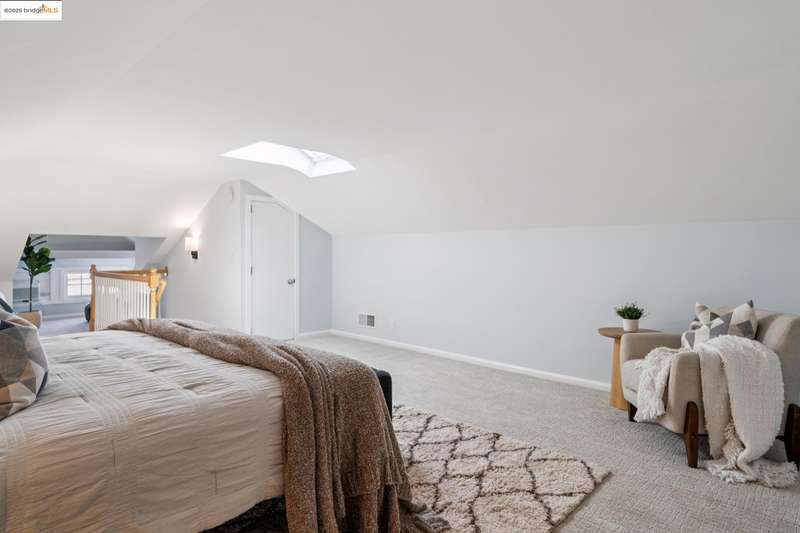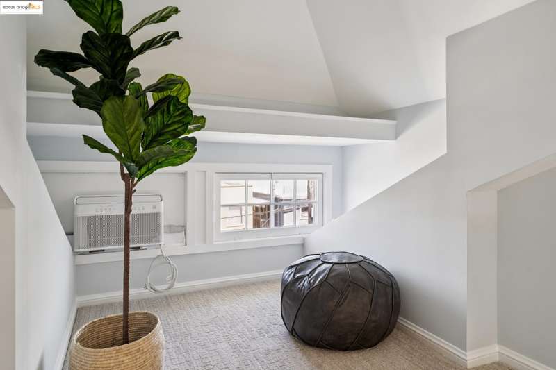 This is a light-filled modern top-floor condo with many period details including high ceilings, picture rails and wainscoting that complement an updated kitchen with quartz countertops, custom tiled backsplash, stainless steel appliances and storage galore. Beyond the kitchen is the bathroom with a clawfoot tub and shower. Adjacent to the bathroom you will find one corner bedroom with great light. The kitchen also has access to the in unit washer and dryer. Entertain in the formal dining room with built-in that leads to a large living and bonus room. Public records show this property as a one bedroom, one bathroom home at 1,033 square feet, however the home has an additional private loft/bonus space* that my sellers used as their principal bedroom. This space also has additional storage located behind the bonus room too! Enjoy an outside common area that has bike storage, BBQ area and more. There are only 4 units in the complex, low HOA fees coupled with an exceptional location. Easy freeway access, blocks from MacArthur BART, coffee shops , restaurants, South Berkeley and the many delights of Temescal, North Oakland and Emeryville. *Buyer to verify use of space. Neither seller nor listing agent has investigated or verified the accuracy of any of these sources of information nor that these spaces are or may be made into legally habitable spaces. Buyer must conduct their own investigation with the city and appropriate professionals and rely solely on that investigation.