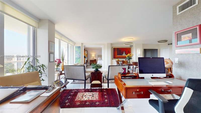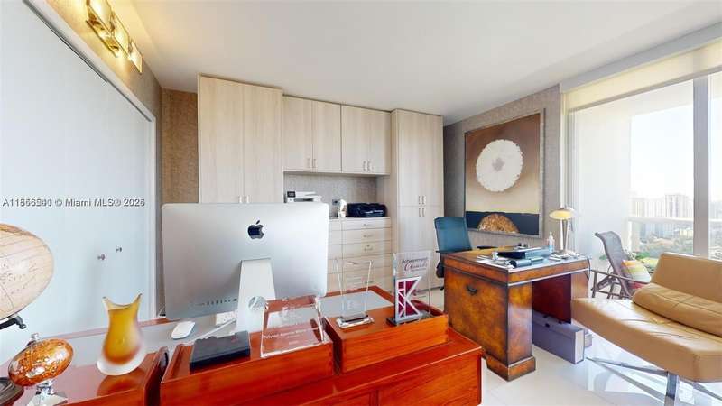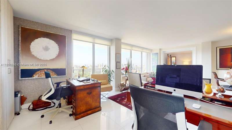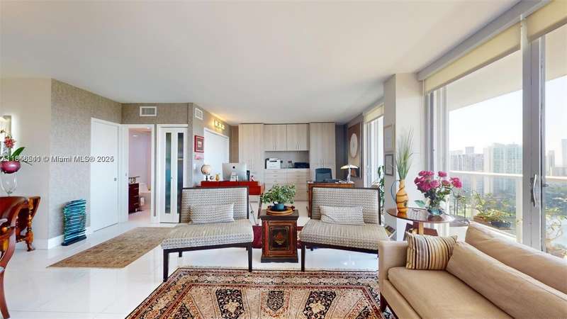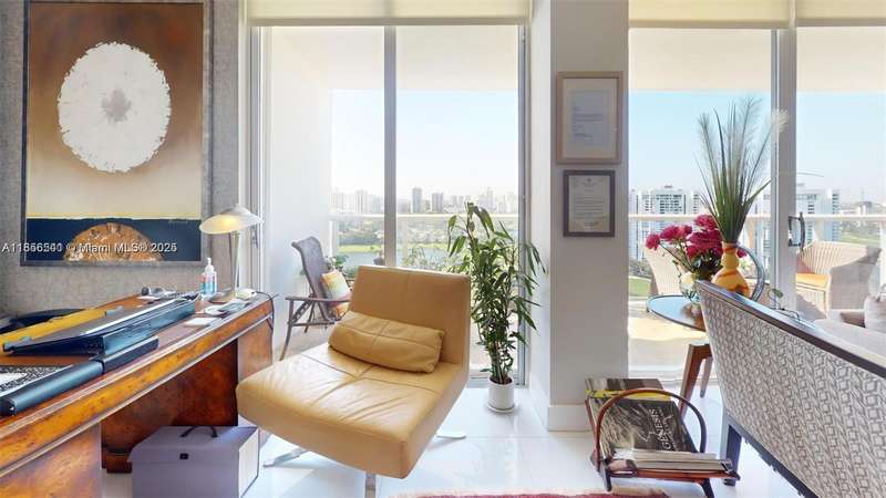 Experience the perfect balance of light and space in this Completely FURNISHED AND renovated 06 line home with attention to every detail. Featuring the building’s largest balcony with 180° unobstructed panoramic views from sunrise to sunset over the iconic Turnberry Golf Course & its 3-mile walking path.1 bedroom,the other bedroom is converted into an office or open bedroom, The split floor plan offers generous closet space deeded covered parking and a storage bin Commercial washer and dryer are conveniently located on each floor.Situated on The gym New BBQ area party and play rooms within this safe welcoming community.700 credit score is required.Washer/dryer in hallway.Only Service pets allowed.