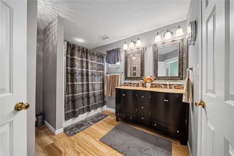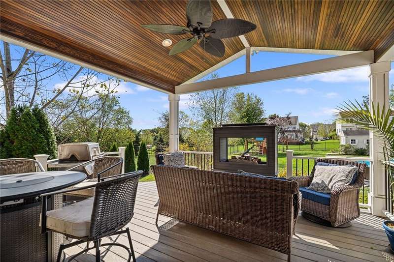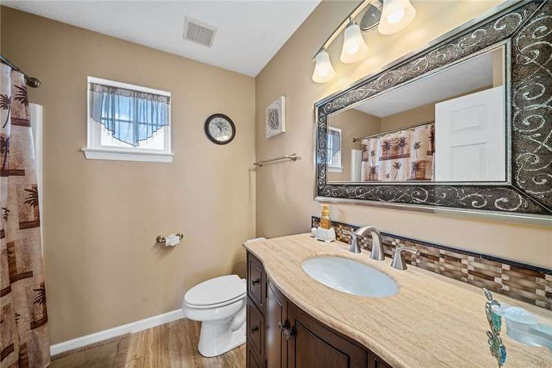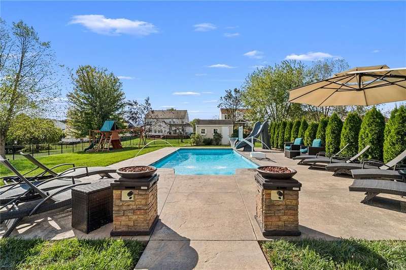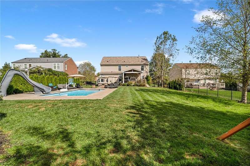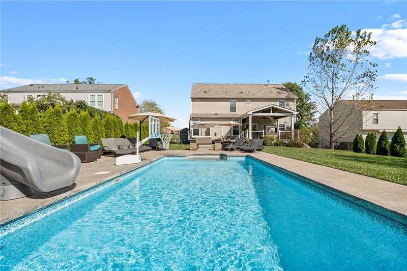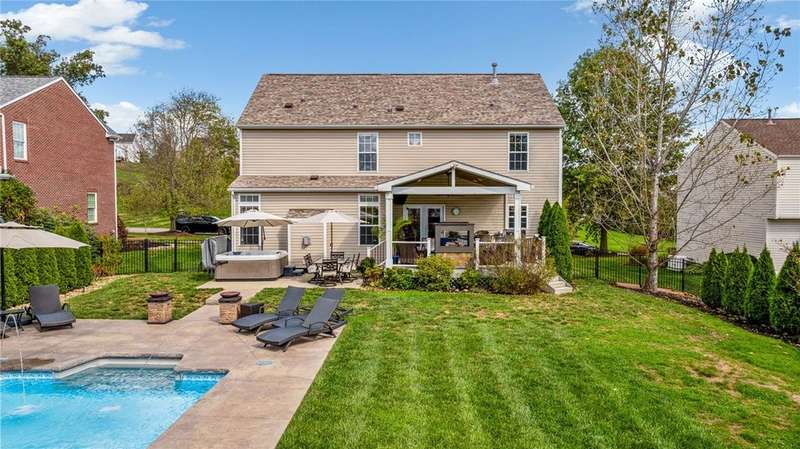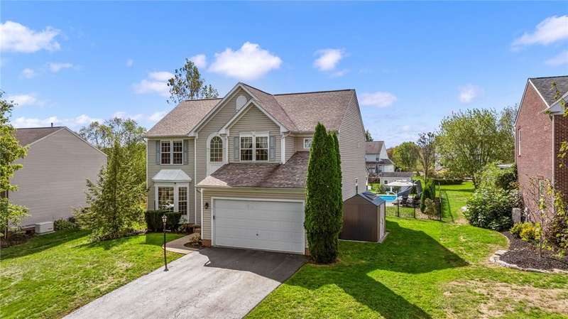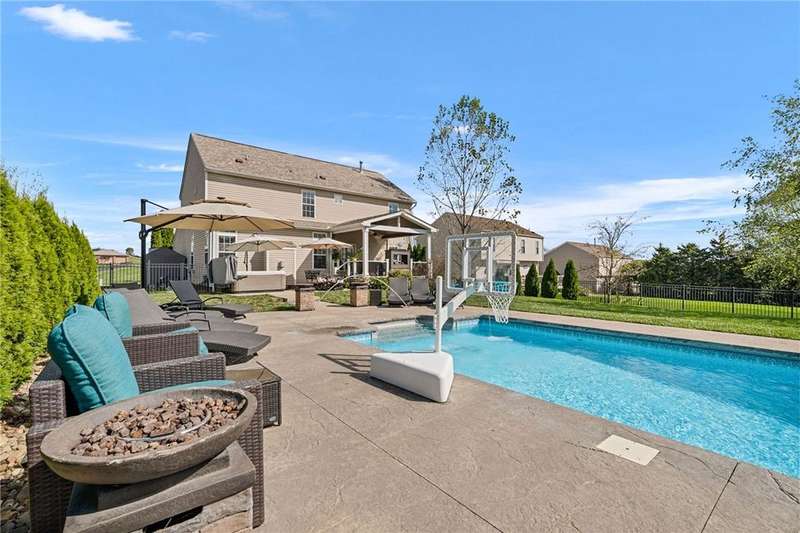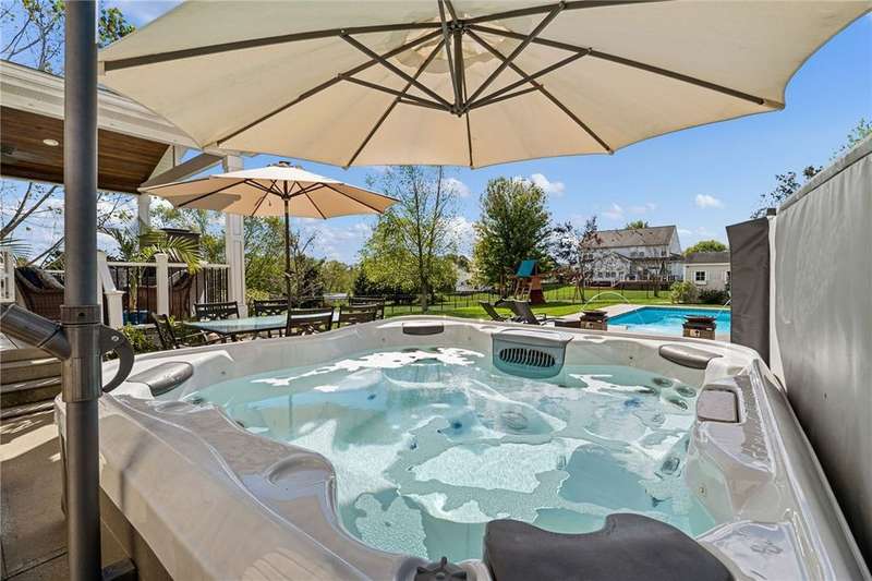 Beautifully updated 4-bed, 2.5-bath home with a finished basement and exceptional outdoor living space. The kitchen features granite counters, stainless appliances, and a casual dining area opening to a covered composite deck?perfect for entertaining or relaxing. Step outside to your private retreat with a large salt water pool with customizable lights and water feature, stamped-concrete patio, year-round hot tub, and privacy trees surrounding the fully fenced backyard. Inside, the formal dining room offers a tray ceiling and oversized bay window, while the finished basement provides flexible space for a home gym, game room, or theater. Two sheds add extra storage for pool gear and tools. The attached two-car garage gives easy access to the kitchen and expands the lower level. Thoughtfully maintained with modern updates throughout, this home delivers comfort, function, and a true resort-style lifestyle just minutes from shopping, dining, and easy access to 910/8/76.