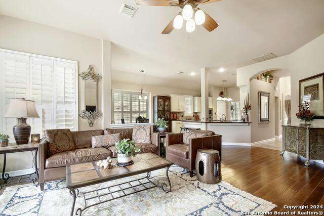 OPEN HOUSE SUNDAY 10/5 FROM 1-3 PM. Welcome to 13803 Sienna Ct. Tucked away in a peaceful cul-de-sac at the back of an exclusive subdivision, this stunning one-story home offers privacy, elegance, and comfort on a large, beautifully landscaped lot. Featuring an in-ground pool and an expansive covered patio, the outdoor space is perfect for relaxing or entertaining in complete seclusion. Meticulously maintained by its original owner, the home boasts a spacious primary bedroom suite, a gourmet kitchen, and a generous bonus room on the second floor-ideal for additional living or recreational space. Inside, you'll find high-end finishes such as hand-scraped maple floors, plantation shutters, and abundant natural light throughout. Located in close proximity to Valero, UTSA, and major thoroughfares like IH-10 and 1604, this property offers easy access to work, shopping, and recreation. Experience luxury and convenience at 13803 Sienna Ct. Schedule your private tour today!