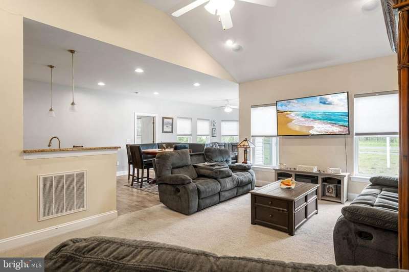 Welcome to effortless coastal living in this well maintained 3-bedroom, 2-bath coastal ranch nestled in a water-oriented community loaded with resort-style amenities. Spanning 1,666 sq ft, this turnkey home comes fully furnished and move-in ready, featuring an airy open floor plan perfect for modern lifestyles. Enjoy cooking in the chef's kitchen with Granite countertops, a center island and breakfast bar, stainless steel appliances, plenty of cabinetry for storage, tankless water heater and sleek LVP flooring that flows seamlessly into the dining and family room areas. The owner's suite boasts a luxurious ensuite bath with a soaking tub, dual vanity, walk-in shower, and an oversized walk-in closet. Two more bedrooms on the opposite side of the home share a second full bath. Outside, unwind on the private rear patio with a fire pit-ideal for starry nights or morning coffee. includes a 2-car garage, central vacuum system, and thoughtful details throughout. Set in a vibrant community offering a private marina and boat ramp minutes from the Indian River Bay, a pool, fitness center, community clubhouse with full kitchen and bathroom facilities, picnic space, and a cozy fire pit area-this is more than a home; it's a lifestyle.