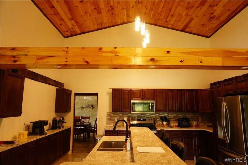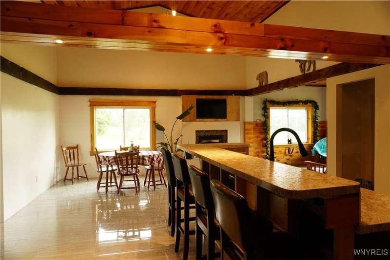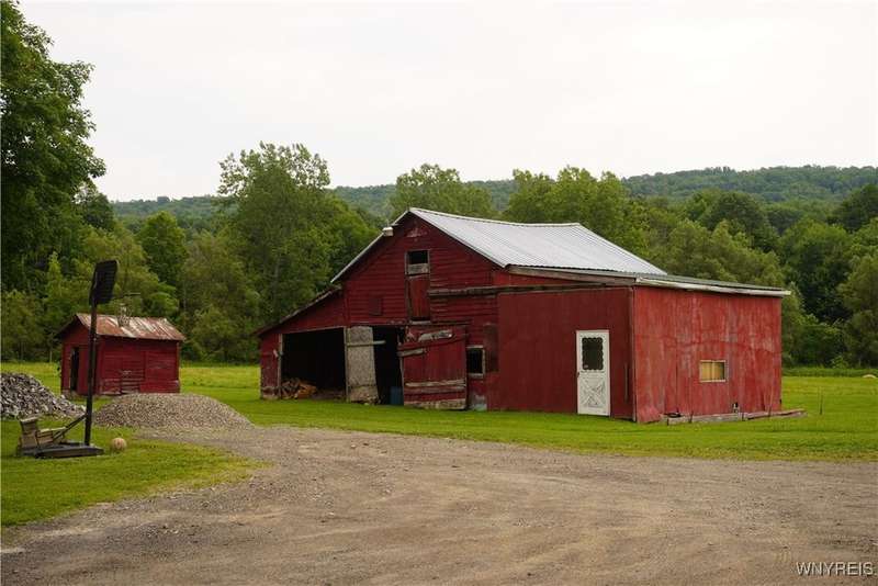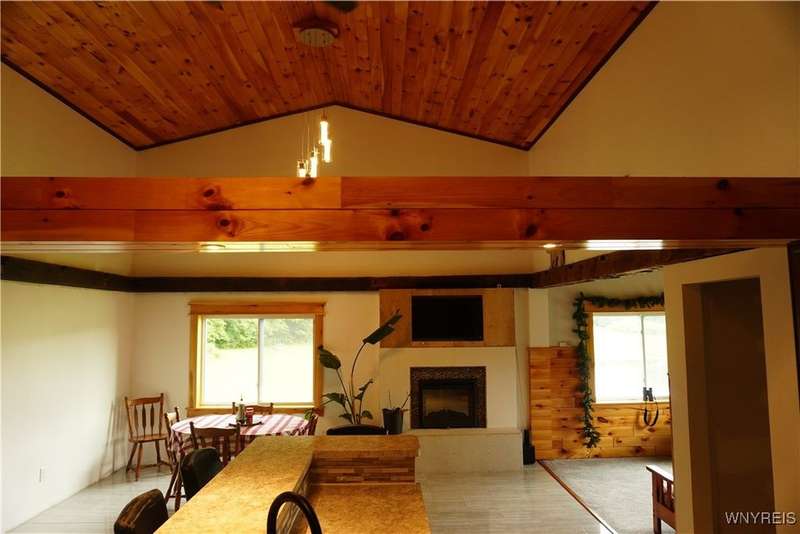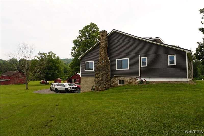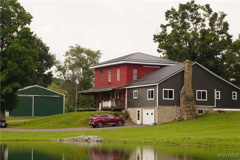 This large 2-story farmhouse sits on a scenic 21.2-acre parcel featuring a serene pond, a 36x60 pole barn with electric, 20x36 barn/hay storage, and an additional building for machinery storage. In 2023, a major addition was built from the foundation up, adding a modern kitchen, sitting room, oversized laundry room, and a large entryway. This newer section boasts ceramic tile flooring, soaring cathedral ceilings, an electric fireplace, a huge bar/sink area, and ample cabinetry. It's nearly complete?just waiting for your finishing touches. The original part of the home offers 4 bedrooms, 1 full bath, a formal dining room with beautiful stamped tin ceilings, a home office, and a spacious living room. There's also a gutted room off the dining area?ideal for a second full bath or a first-floor bedroom. The home includes a full basement with a one-car garage underneath. Efficient mini-split electric heat pump units provide both heating and cooling, along with built-in dehumidifiers. The property features mostly open, tillable land, a go-kart track out back, a bordering stream, and a small wooded section?perfect for outdoor adventures or hobby farming.