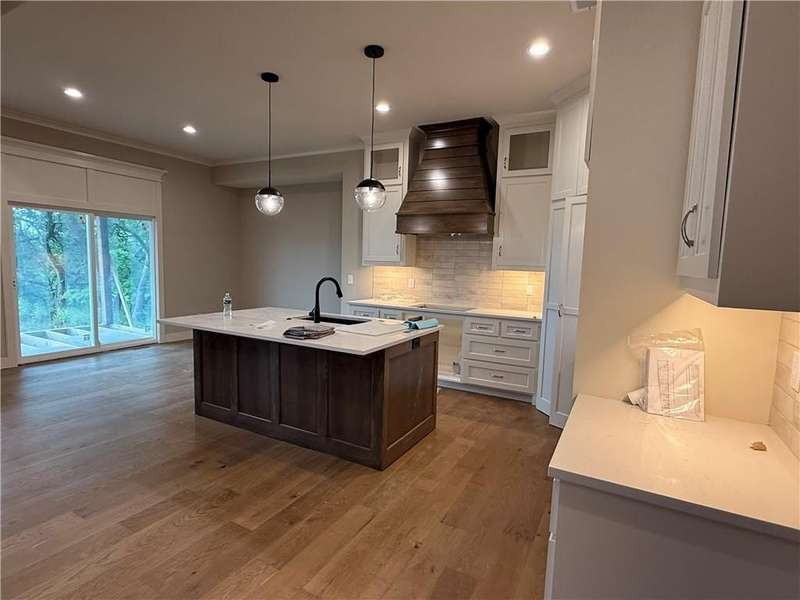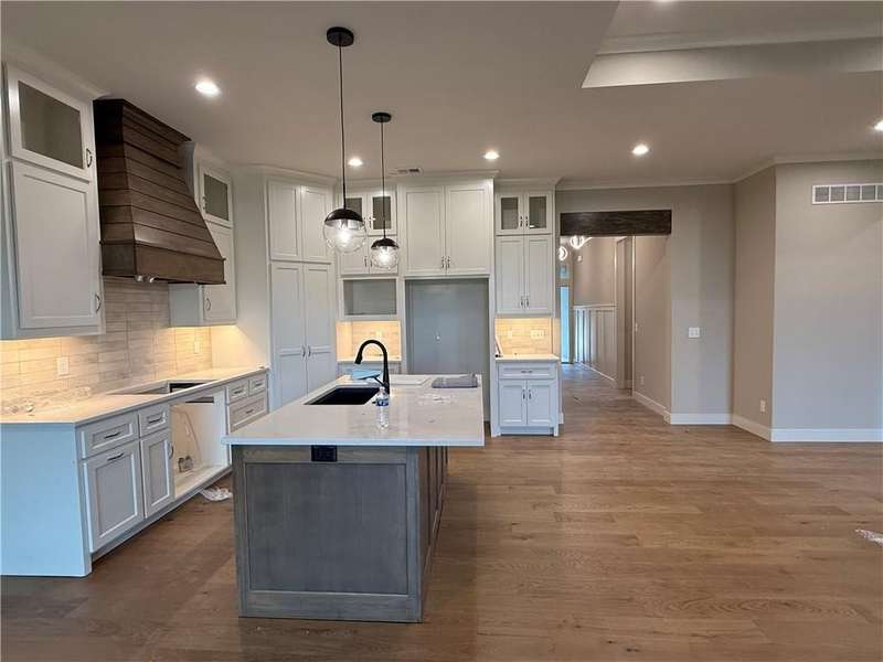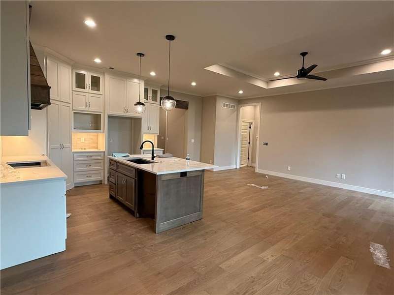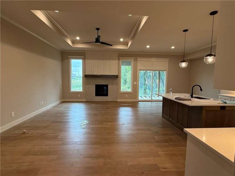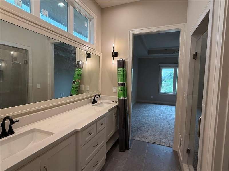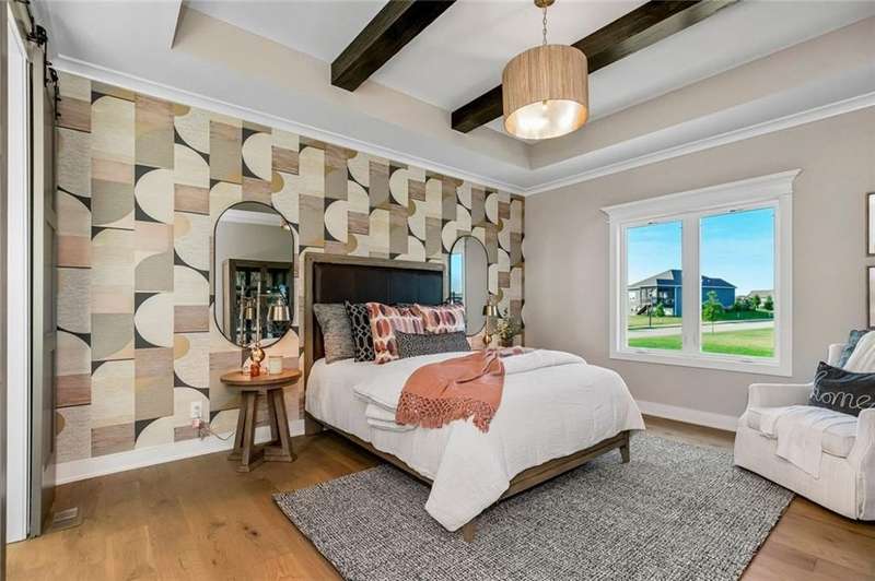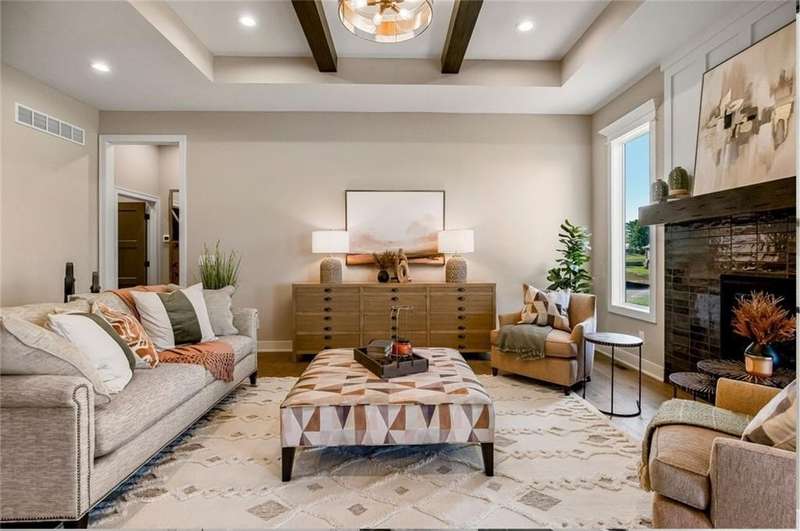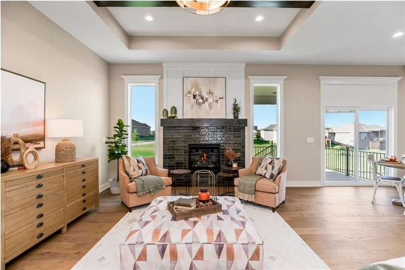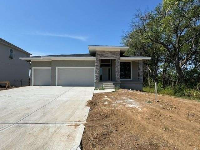 Welcome to Southern Meadows. Overland Parks newest premier community in the highly sought after Blue Valley School district. The Richmond by Gabriel Homes is an award winning 4 Bed 3 bath reverse 1.5 story home with a 3 car garage on a daylight lot backing to greenspace. This home sits on lot 108 and features a modern yet timeless contemporary exterior and all of the finishes you have come to love. Natural lighting fills the home with oversized windows in the great room. Enjoy your high-end kitchen features quartz counters, expanded kitchen island, custom hood, under cabinet lighting and to die for walk in pantry. Enjoy evening sunsets on your covered deck located off the breakfast room. Main floor features both primary and 2nd bedroom. Fantastic and functional layout. Enjoy the large finished basement features 2 additional bedrooms, oversized rec room, and natural lighting. This home sits on a fantastic oversized lot with incredible views. Home is currently at dry wall stage with estimated completion date of Oct 2025. Pictures of the finished home are same floor plan however colors and features will vary.