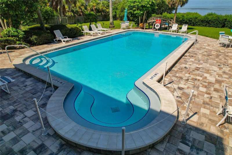 Sunset Shores sits at one of Tarpon Springs’ highest and driest elevations—about 24 feet above sea level—directly on the Gulf and protected by a private cove, with no storm damage to any units. Flood insurance is not required, and the reserves are fully funded with milestone structural integrity requirements already met. This nearly soundproof, move-in-ready home has been expertly updated throughout, featuring brand-new hurricane/impact protections, new floors, luxurious plantation shutters, ceiling fans, and granite countertops. Enjoy a quiet, spacious screened-in patio and deed-covered parking just steps from your front door. Tucked in a gated community off S. Florida Ave, you’ll be minutes from Tarpon Springs’ Sponge Docks, beaches, and parks, with an HOA that supports active, all-age living. The development comprises only 74 units, making it very pet- and rental-friendly, with a welcoming, community-focused environment.