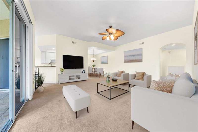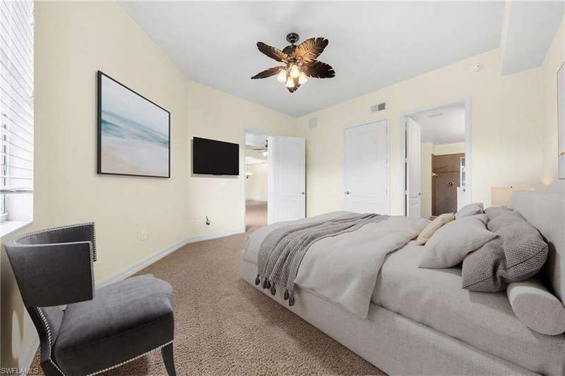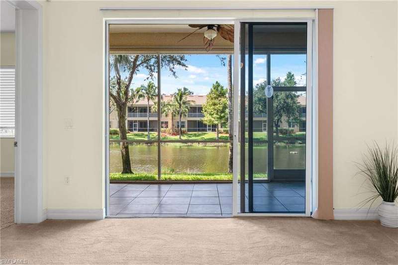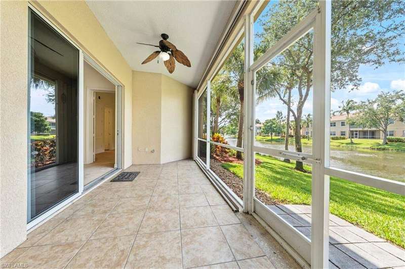 The elements of chic sophistication, coastal flair, and location merge together at this gorgeous nearly 1,900 SQFt, FIRST FLOOR 3 bedroom and 2 bath LAKEFRONT coach home in the premier and centrally located gated community of Jonathan's Bay at Fort Myers with a 2024 roof! The 3 L's (location, location, location) ring true at this special unit nestled just North of Alico Rd, South of 6 Mile Cypress and close to all the action Southwest Florida has to offer from Publix, Fresh Market, Home Depot, & Bell Tower mall just 5 minutes away from the gates of Jonathans Bay. Famed Ft Myers Beach is just a short 15 minute drive away with the Gulf's breathtaking views. From the entryway of your unit, you are welcomed into the foyer with the guest bedrooms to the right and left and the first full bathroom on the right. Through the foyer, you are ushered through to the living area and kitchen just beyond; all with gorgeous lakeviews from the screened in lanai. Your kitchen comes equipped with modern appliances, plentiful cabinet and counter space, disposal, and sleek countertops. Entertaining is a breeze with 2 entry points from the living and kitchen area out to the lanai bringing the outdoors in. Your living area is large with tons of natural light with the south facing rear. The primary bedroom is large and enjoys a double vanity, water closet, oversized walk-in closet, and lake views. The two guest bedrooms are also large in size and enjoy double closet space and natural light. Peace of mind is enhanced with a brand new roof (2024), brand new hot water heater (2024), HVAC System (2022), 1 car garage, laundry in residence, and hurricane screens along the lanai. Jonathan's Bay enjoys the exercise room, community pool, spa, and gated entry leaving a lasting impression of tranquility and security all within a convenient distance to parks, RSW, beaches, and all the rest of Southwest has to offer right at your disposal!
