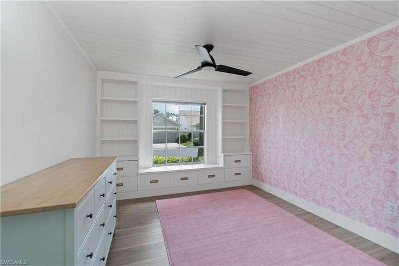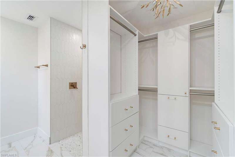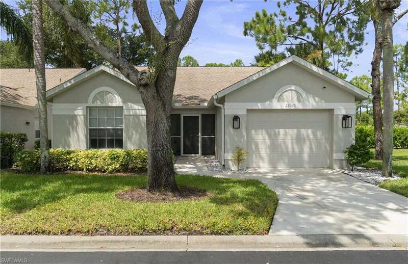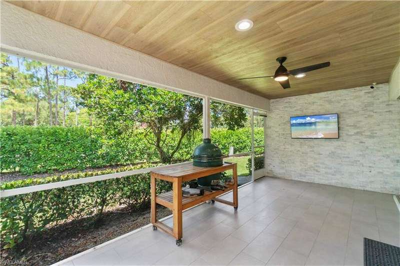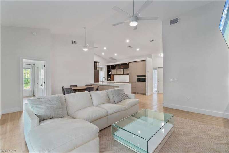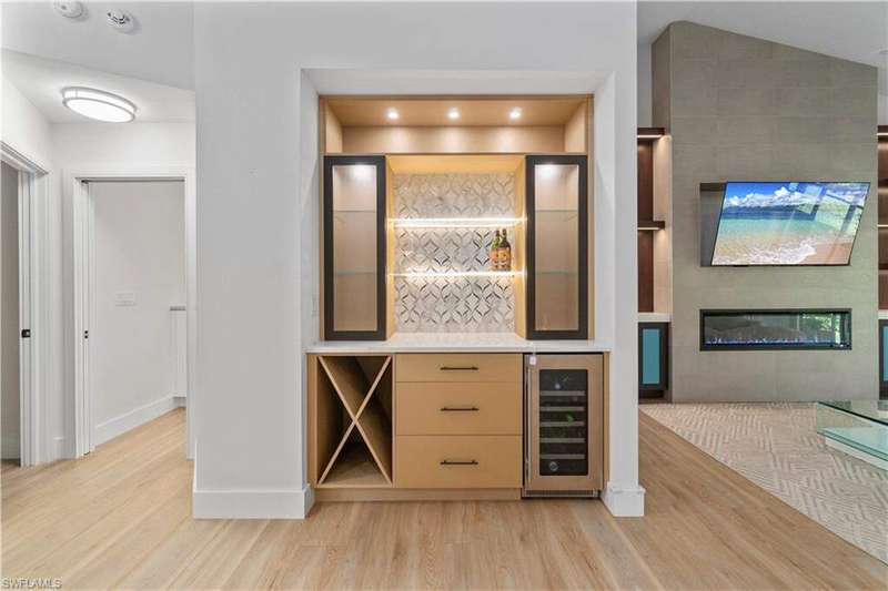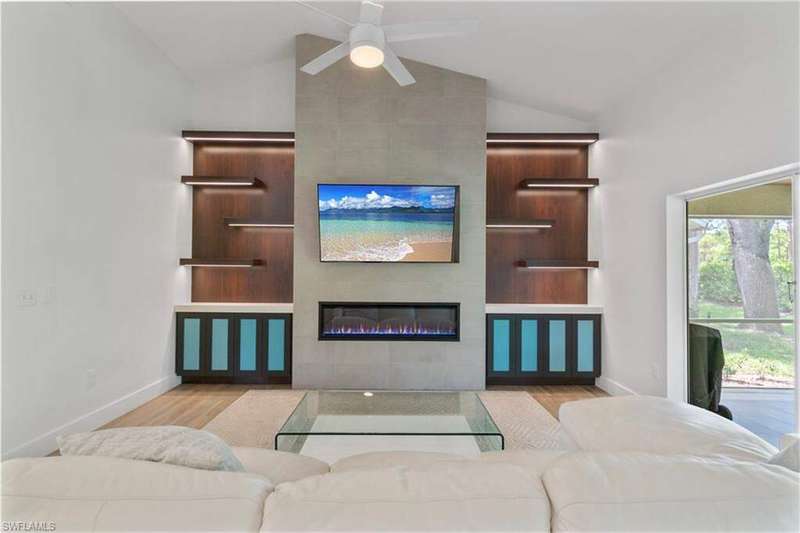 Welcome to a true modern masterpiece, where exquisite charm meets unparalleled craftsmanship. This fully high-end renovated residence is not just a home-it's a 360 piece of art. Every detail has been curated with the precision and elegance you'd expect to see in the pages of a world-class design magazine. Step inside and be greeted by tall ceilings and abundant natural light that amplify the home's open and airy feel. Throughout, luxury vinyl floors bring warmth and continuity, while the porcelain-tiled master bath exudes spa-like sophistication. The home's design showcases a thoughtful blend of the finest materials, including Silestone quartz kitchen counters, quartzite in the master bath, and Cambria quartz in the guest bath. The heart of the home shines with a chef-inspired kitchen rivaling those found in multi-million-dollar estates, complete with sleek finishes, timeless design, and high-end appliances. A striking statement fireplace with lighted floating shelves anchors the living space, while a custom bar area promises to impress guests and elevate your entertaining. The guest bedroom features custom built-ins, offering both elegance and functionality. Enjoy exceptional privacy with an open lot on the right side of the home, with no neighbors-an uncommon bonus in this sought-after community. A large side yard expands your living outdoors, perfect for gatherings under the Florida sunshine. Fairway Dunes is a peaceful, centrally located gem with a true sense of neighborhood charm. Residents enjoy an active clubhouse, GEO-thermal heated pool with baths, tennis and pickleball courts, a barbecue area, and scenic walking paths around the lake-all with low HOA fees. The home sits in an X flood zone, with no current assessments. Just minutes from Coconut Point, the Promenade, downtown Bonita Springs, RSW Airport, Interstate 75, FGCU, golf courses, parks, and boat ramps-not to mention the white sand beaches of Southwest Florida-you'll find the perfect balance of relaxation and everyday convenience. This isn't simply a place to live-it's a place to be. Touch every moment at this one-of-a-kind Fairway Dunes retreat.