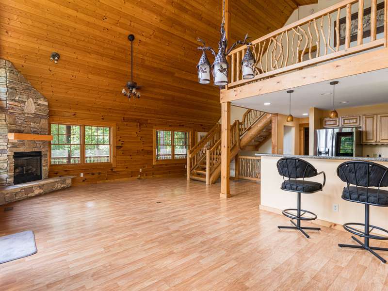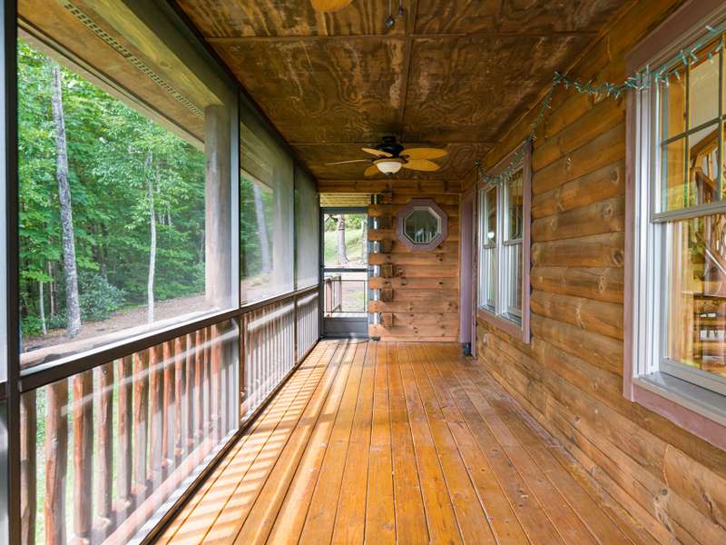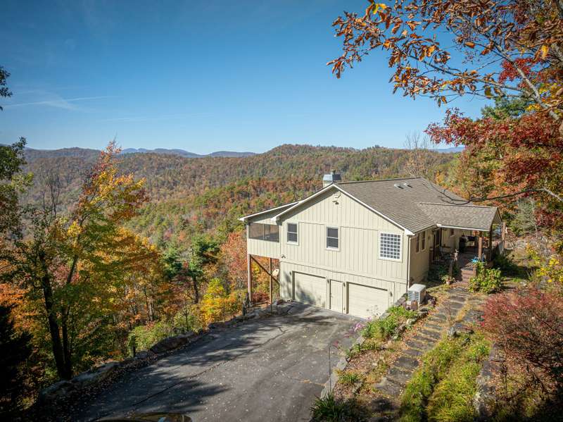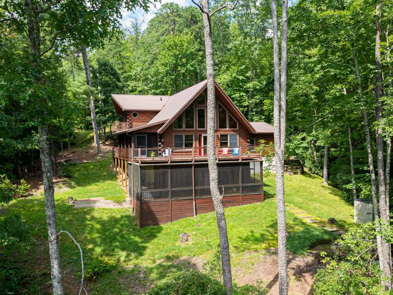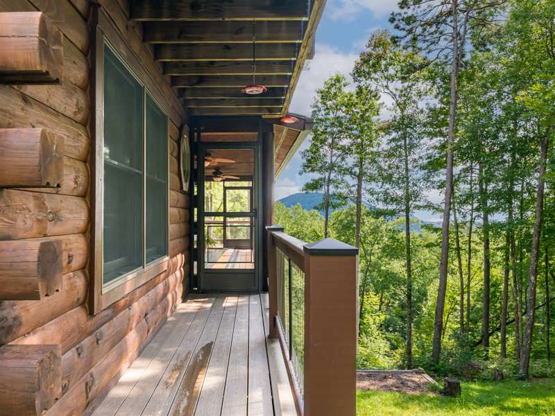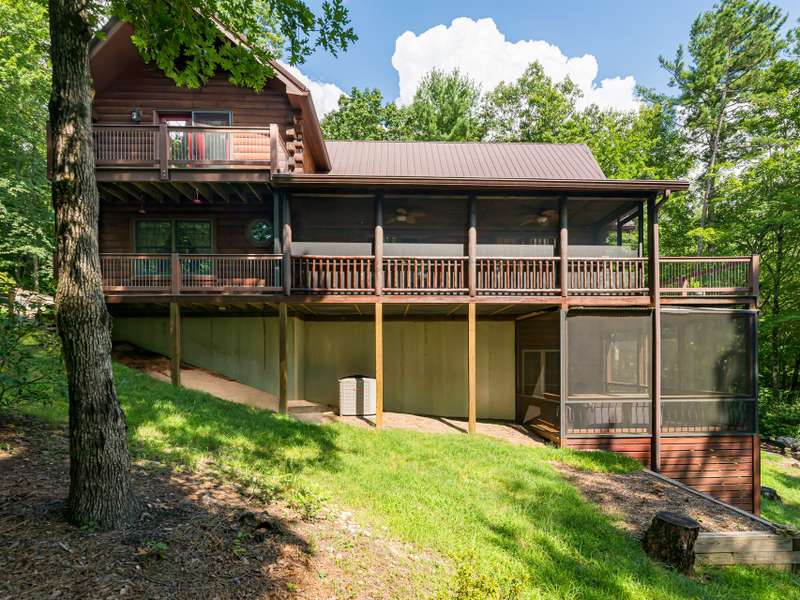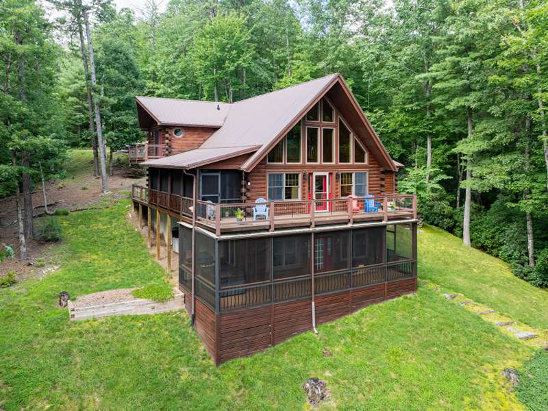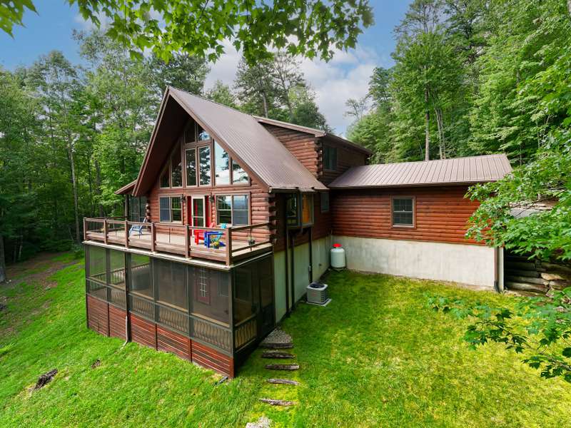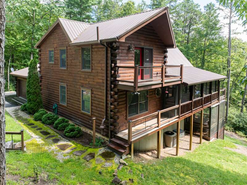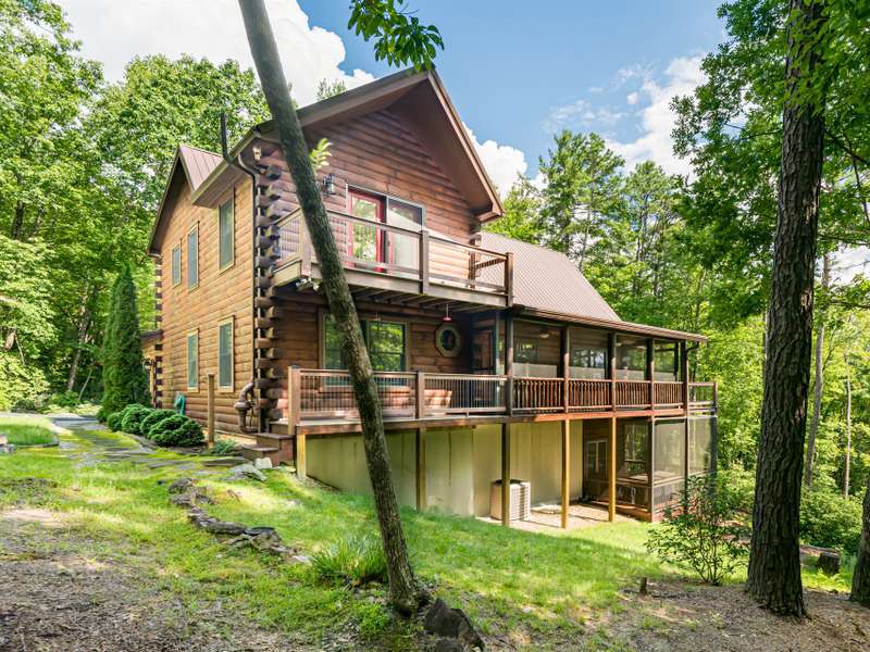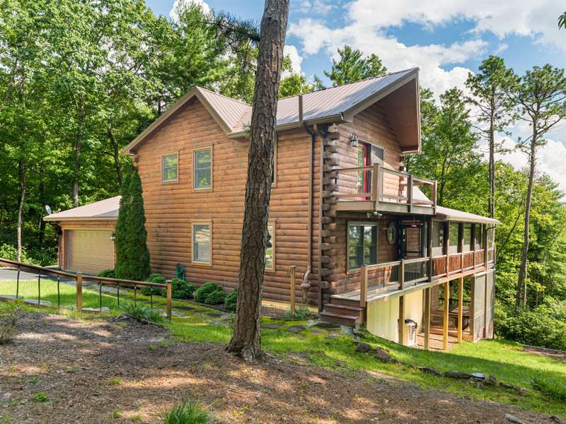 THIS IS THE MOUNTAIN HOME OF YOUR DREAMS!Prepare to be captivated by this stunning log home, nestled on a sprawling 2.2-acre private oasis. Enjoy breathtaking mountain views and the expansive decks, featuring durable new Trex decking and cable railings. Immerse yourself in the tranquility of nature with beautifully terraced rock landscaping and a cozy fire pit ? the perfect combination for year-round enjoyment. Recently sealed and stained, the logs are maintenance free. The primary bath features new granite, sinks and faucets, a large shower and double closets. This is the quintessential mountain home in a lovely small neighborhood near Gorges State Park. Don't miss this opportunity! The lower level offers a great entertaining space with wet bar, pool table and six seat theater all of which conveys, as well as a nice guest bedroom and bath. Community trail system leads to large waterfalls and is located at the top of the drive.An additional 1.4 acres with a small stream is available behind the house-see MLS #4303182 for details.