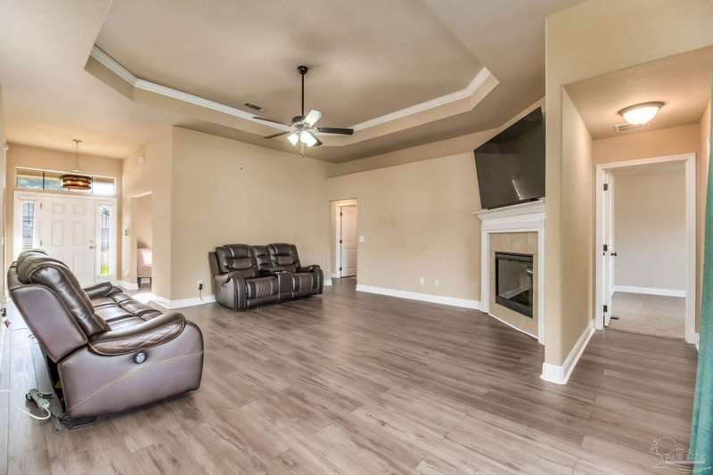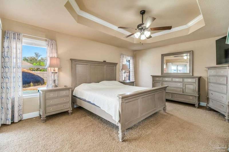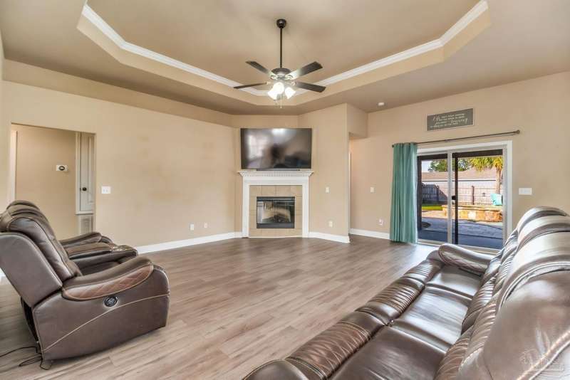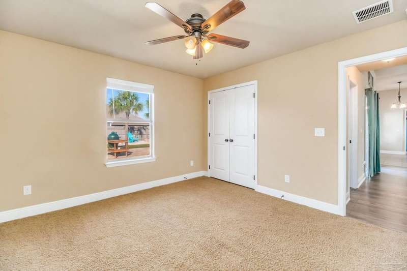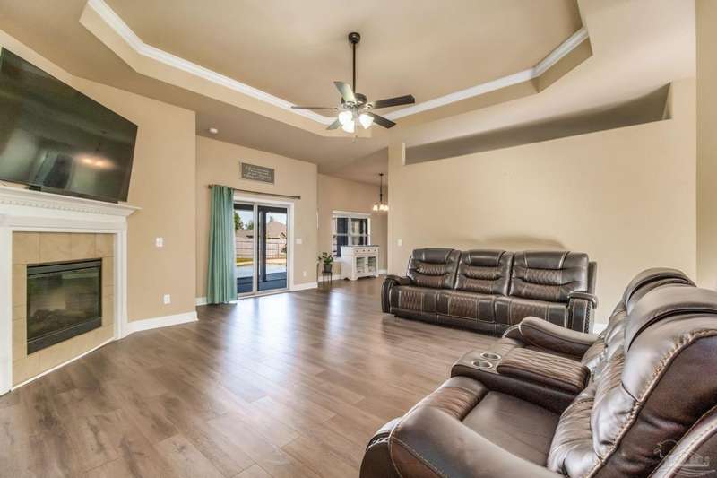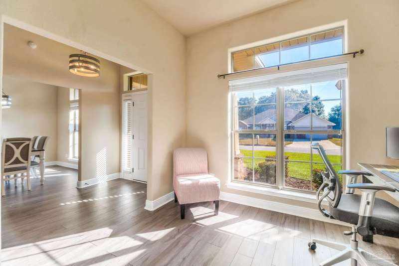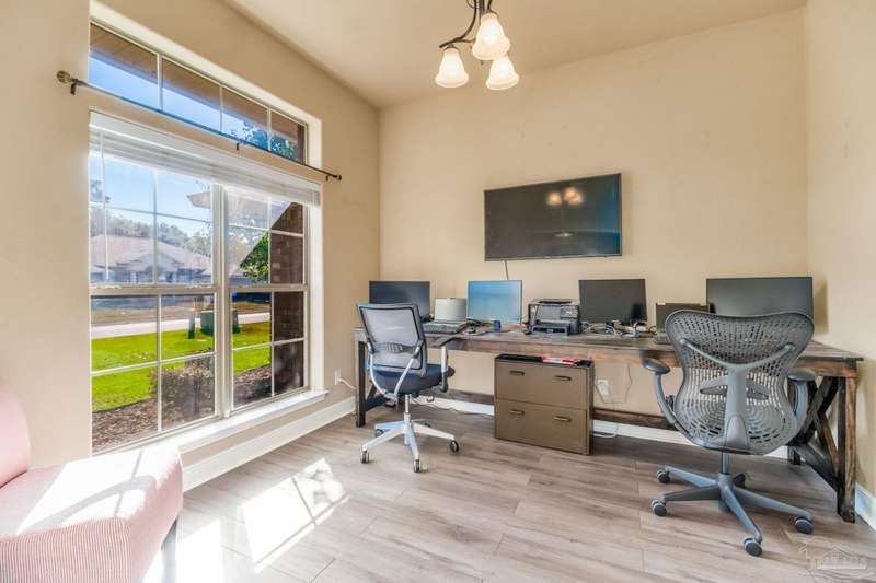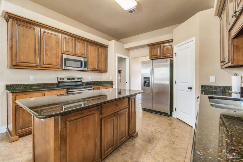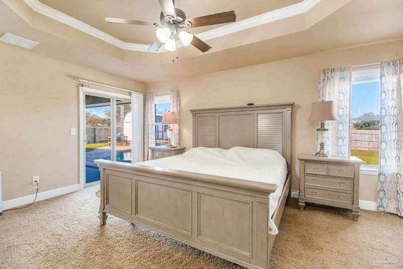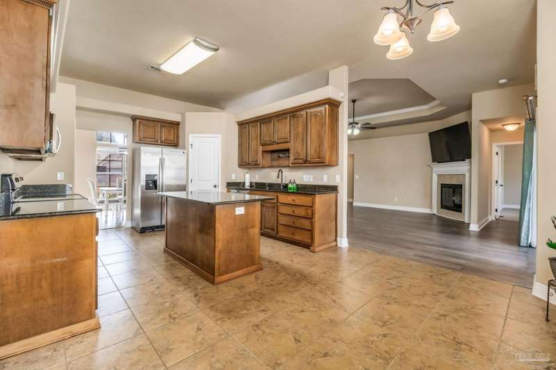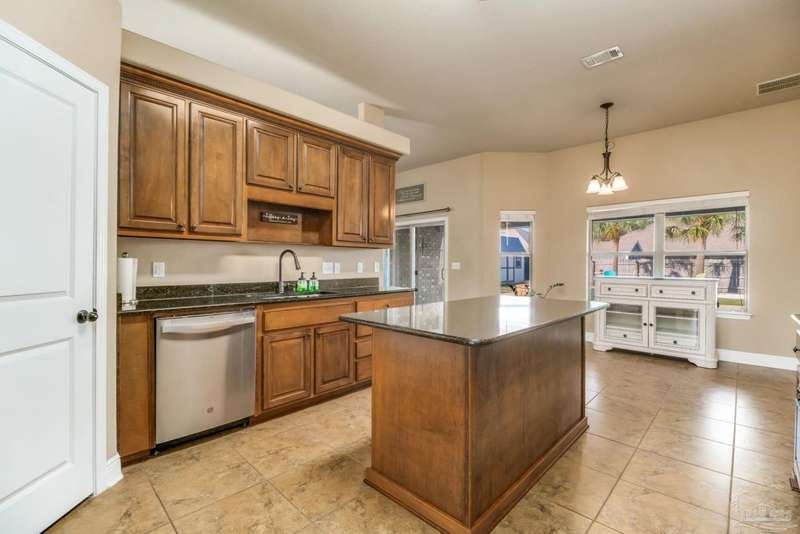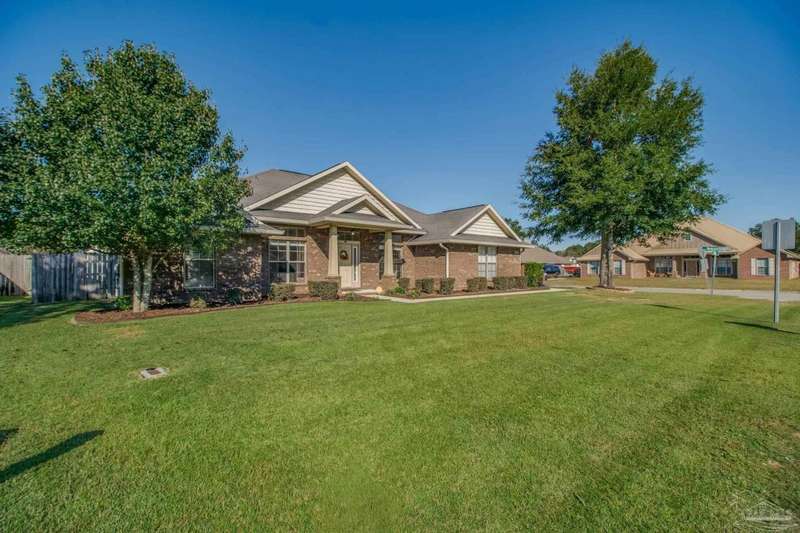 Beautiful 4-bedroom, 3-bath brick home featuring high ceilings and a spacious, open layout. The kitchen is a showstopper with gorgeous cabinets, granite countertops, a pantry, and plenty of workspace-perfect for cooking and entertaining. Enjoy meals in the formal dining room or relax in the comfortable living area. There's also an extra room that would make a great office, playroom, or hobby space. The primary suite offers a relaxing retreat with a soaking tub, walk-in shower, and double vanities. Step outside to your own backyard paradise-a heated gunite pool and spa, a sandy fire pit area, and a nice storage shed, all within a fenced corner lot that provides space and privacy. No HOA, so you can truly enjoy your home your way!