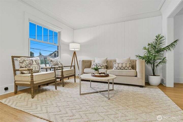 Nestled on a quiet street in Wallingford, this 3-bed, 2.75-bath Craftsman blends classic charm with thoughtful updates. The main floor offers 2 bedrooms, a welcoming living room with formal dining, and a gourmet kitchen with a casual eating nook. Upstairs, French doors open to a spacious primary suite with space for a home office or bonus room. Fresh paint, new carpet, and updated lighting make it move-in ready. With 1807 sq. ft. of finished space plus 790 sq. ft. in the unfinished basement, this home offers ample room to live, work, and grow. Outside, an expansive deck provides room for entertaining or relaxing. Just moments from the action this Wallingford gem offers the perfect mix of character and modern comfort.