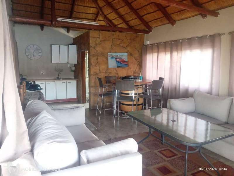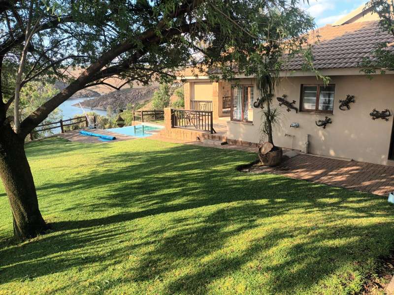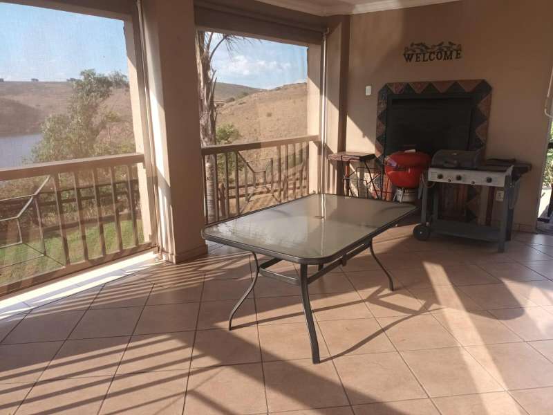 Exclusive Sole Mandate Situated on a 16.7 ha stand Nestled within a serene estate where roaming wildlife such as eland, blesbok, black wildebeest, giraffes, zebras, and hartebeest grace the landscape, this stunning property offers an unrivaled retreat with breathtaking, uninterrupted views of the dam. This home seamlessly blends luxury and nature, creating a tranquil escape that's perfect for both relaxation and entertainment. The main residence boasts three spacious bedrooms, with the primary suite offering an en suite bathroom for ultimate privacy and comfort. An additional bathroom and a convenient guest toilet cater to both residents and guests. The heart of the home is a modern, stylish kitchen that flows effortlessly into an inviting lounge and a cozy built-in bar area, perfect for entertaining family and friends. A double garage provides ample parking, while an enclosed patio with canvas coverings houses an impressive entertainment area complete with a built-in braai, ensuring year-round enjoyment. For those who revel in water-based activities, the property includes a thoughtfully designed boathouse. This unique space features its own entertainment area, equipped with a kitchenette and bathroom, and a garage complete with two winches to simplify the launching of boats and jet skis. A private jetty provides direct access to the dam, allowing easy exploration of the scenic waters. The boathouse also includes a wraparound patio, ideal for taking in panoramic views of the tranquil surroundings. Adding to this outdoor haven, a beautifully crafted boma area offers an ideal spot for relaxed gatherings around the fire, perfect for potjies and other open-flame cooking. Additionally, two Wendy houses add versatility to the property. One is designed as a cozy lounge with a bedroom and kitchenette, offering additional living space, while the other serves as an extra bedroom or convenient storeroom. A sparkling pool, carefully landscaped terraces, and a well-maintained garden complete the outdoor experience, enhancing the property?ÇÖs appeal as a luxurious yet natural retreat. For those looking to make this exceptional estate escape truly turnkey, the property's furnishings and a well-maintained golf cart are available as optional extras for purchase from the owner. These additions bring a level of convenience and luxury, ensuring a seamless transition into a lifestyle defined by comfort and ease. The tasteful furnishings complement the home?ÇÖs sophisticated design, while the golf cart allows for effortless exploration of the beautiful estate grounds and nearby amenities. Whether you're drawn to the adventurous surroundings or the serene, nature-filled setting, this unique offering makes settling into your dream retreat all the more effortless and complete.