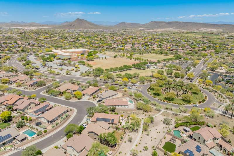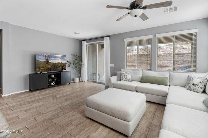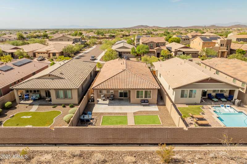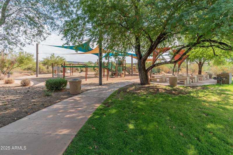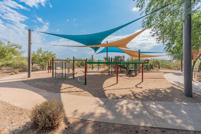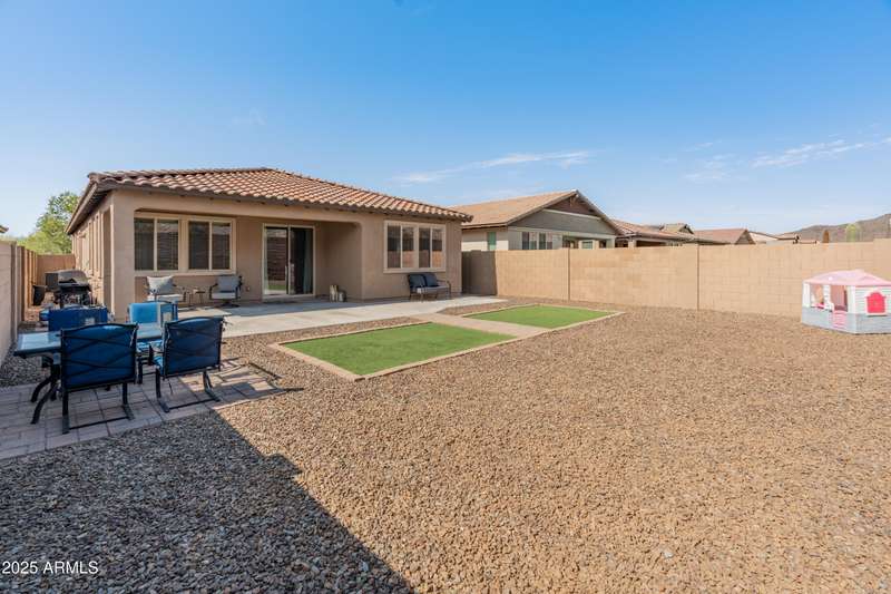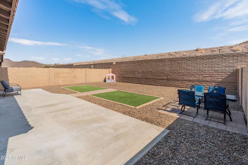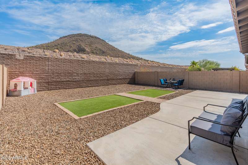 Beautiful 3-bedroom + den home on a premium deep lot in the sought after master planned community of Vistancia. No rear neighbors and single levels on both sides allow for privacy. Spacious great room concept with an island kitchen featuring 42'' cabinets, designer backsplash, under cabinet lighting, and granite countertops. New carpet in bedrooms (installed 7/25) plus freshly painted interior. Enjoy stunning mountain views from your backyard with an extended concrete patio; perfect for entertaining. Community amenities include 3 resort-style pools, tennis & pickleball courts, baseball field, gymnasium, clubhouse, scenic trails, and multiple parks. This home truly combines modern comfort, resort-style amenities, and natural beauty—all in one perfect package.
